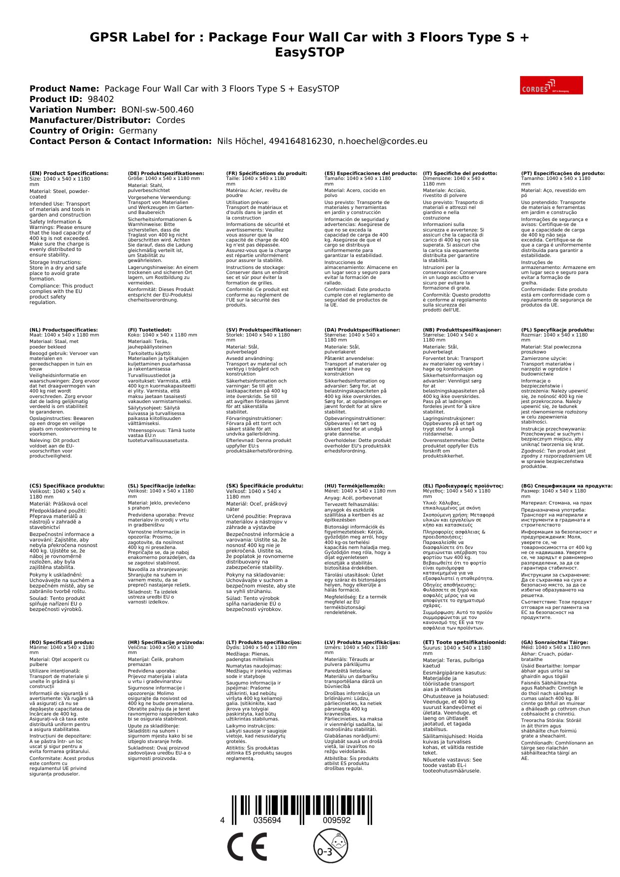 Stellen Sie eine Frage, um mehr über das Produkt zu erfahrenPaket-Vierwandwagen mit 3 Böden Typ S + EasySTOP