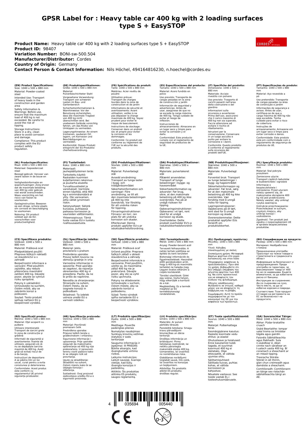 - Hohe Traglast: Mit einer Traglast von 400 kg können Sie auch schwere Gegenstände problemlos transportieren.