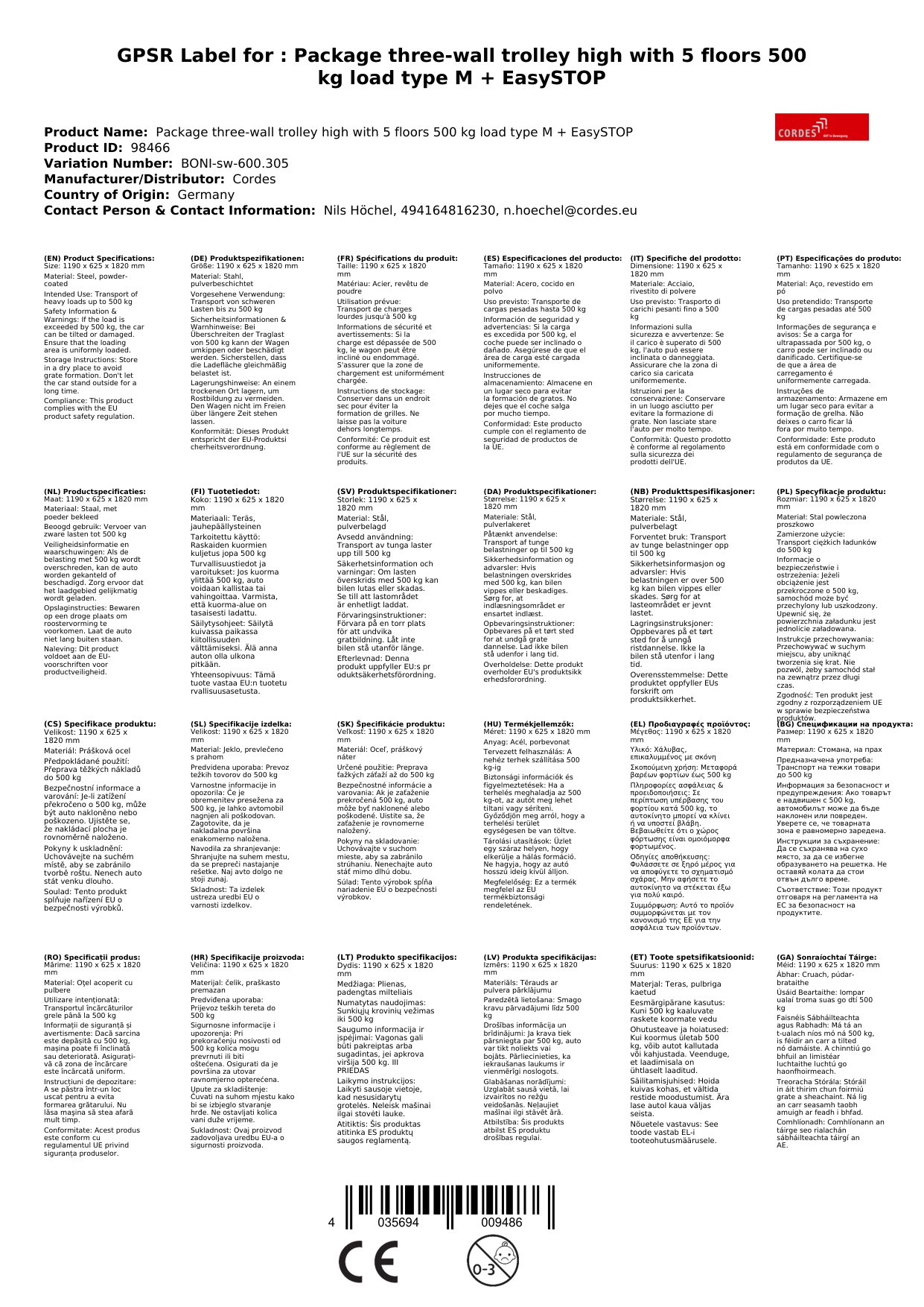 Stellen Sie eine Frage, um mehr über das Produkt zu erfahrenPaket-Dreiwandwagen hoch mit 5 Böden 500 kg Traglast Typ M + EasySTOP