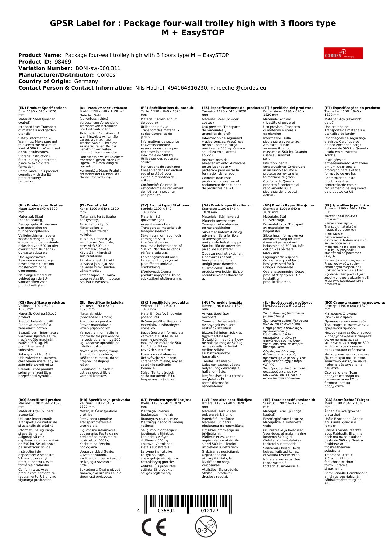 - Effizienter Transport: Der Wagen ermöglicht den schnellen und einfachen Transport von Waren und Materialien innerhalb Ihres Betriebs.