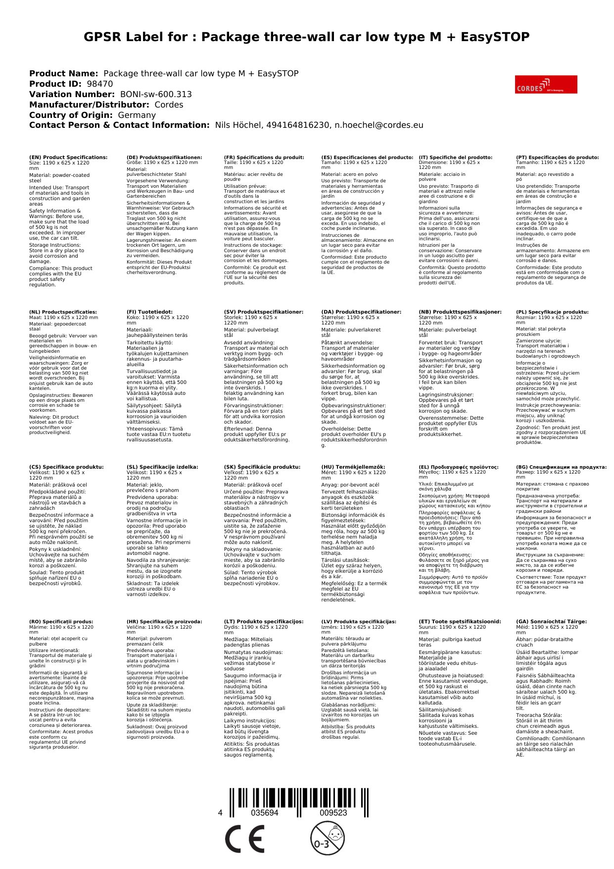 - Optimale Maße: Die Ladefläche bietet ausreichend Platz für Ihre Güter, während die Gesamthöhe ein komfortables Arbeiten ermöglicht.