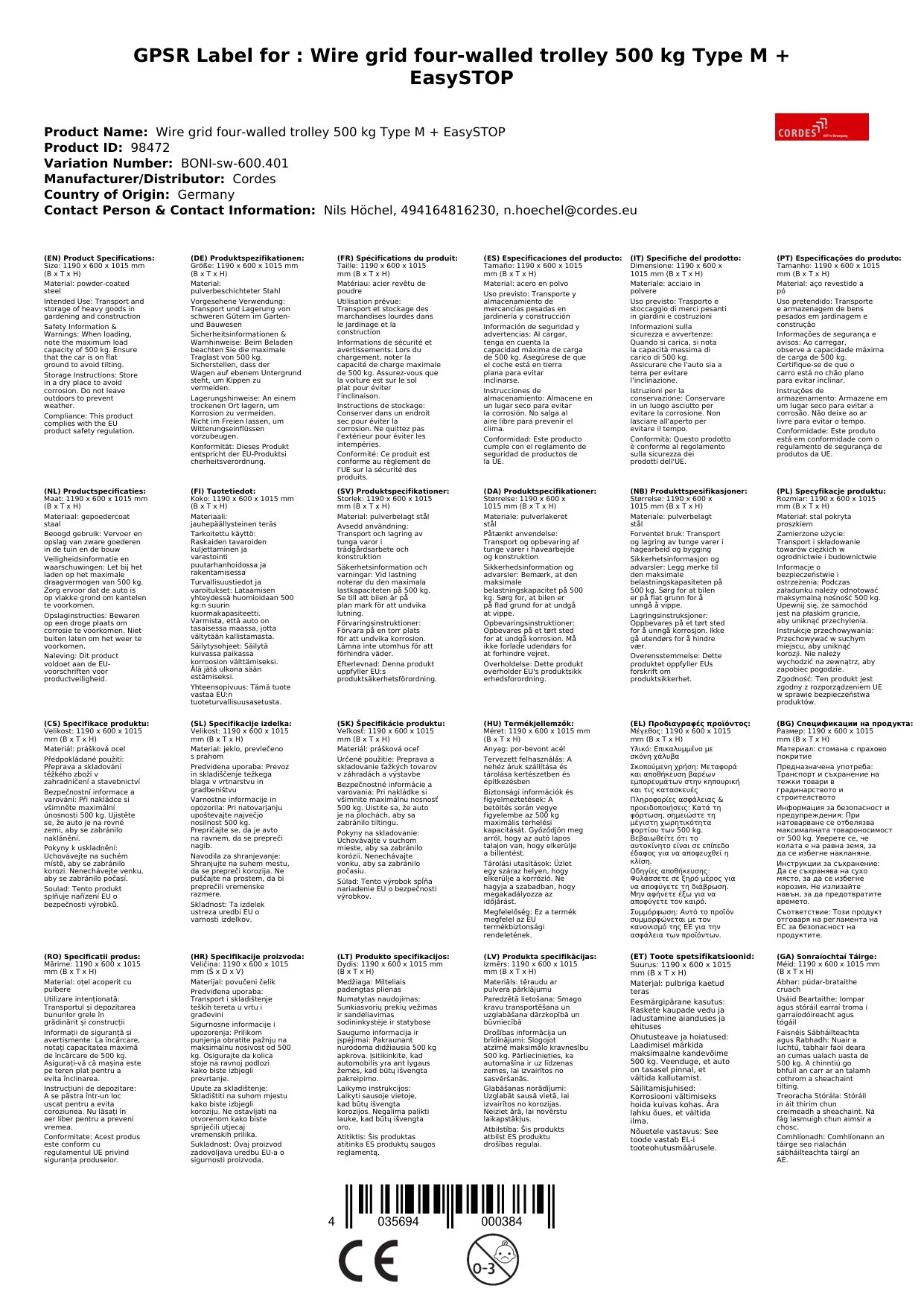 Unser Drahtgitterwagen ist die ideale Lösung für den Transport von schweren Gütern. Mit einer Traglast von 500 kg und der robusten Bauweise hält er auch anspruchsvollen Bedingungen stand. Die EasySTOP-Funktion sorgt für zusätzliche Sicherheit. Das bedeutet für Sie: Ein zuverlässiger und sicherer Transport Ihrer Lasten, jeden Tag.