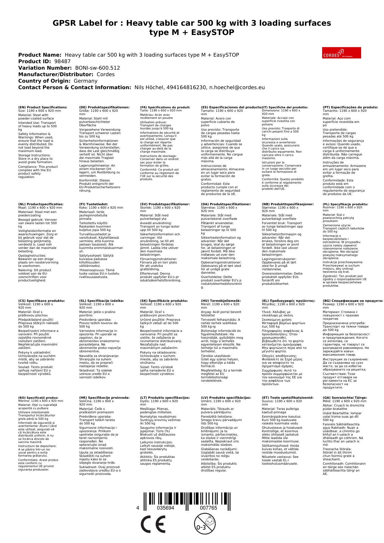 - Ergonomie: Durch die optimale Höhe des Wagens schonen Sie Ihren Rücken beim Be- und Entladen.