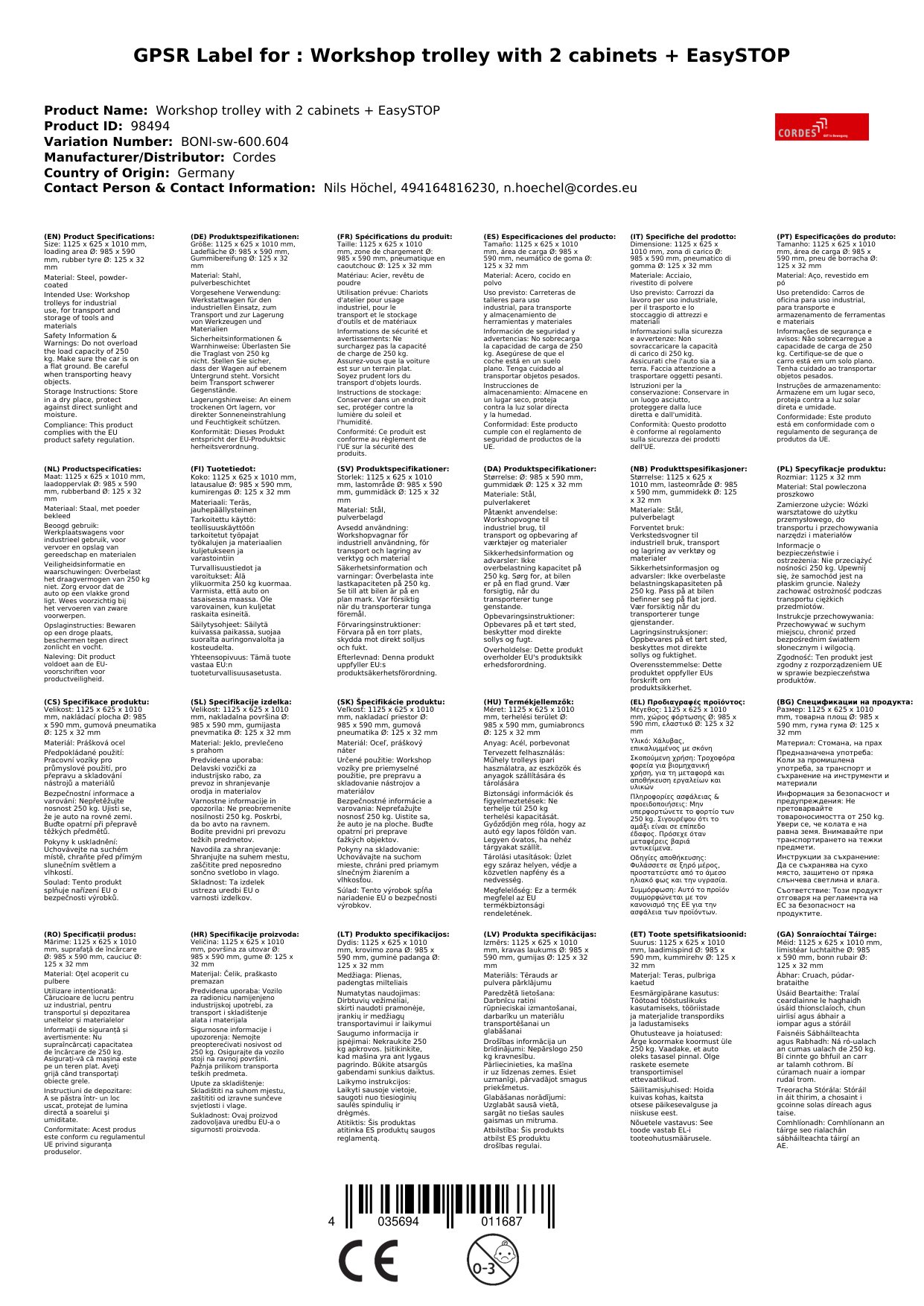 Der Werkstattwagen bietet mit seinen Abmessungen von 1125 x 625 x 1010 mm (B x T x H) ausreichend Platz für Dein Werkzeug. Die Traglast von 250 kg ermöglicht es Dir, auch schwere Gegenstände sicher zu transportieren. Dank der Gummibereifung mit einem Durchmesser von 125 x 32 mm ist der Wagen leicht zu manövrieren. Die pulverbeschichtete Oberfläche schützt den Wagen vor Beschädigungen und sorgt für eine lange Lebensdauer. Warum das für Dich wichtig ist: Du erhältst einen robusten und langlebigen Werkstattwagen, der Dir viele Jahre treue Dienste leisten wird.