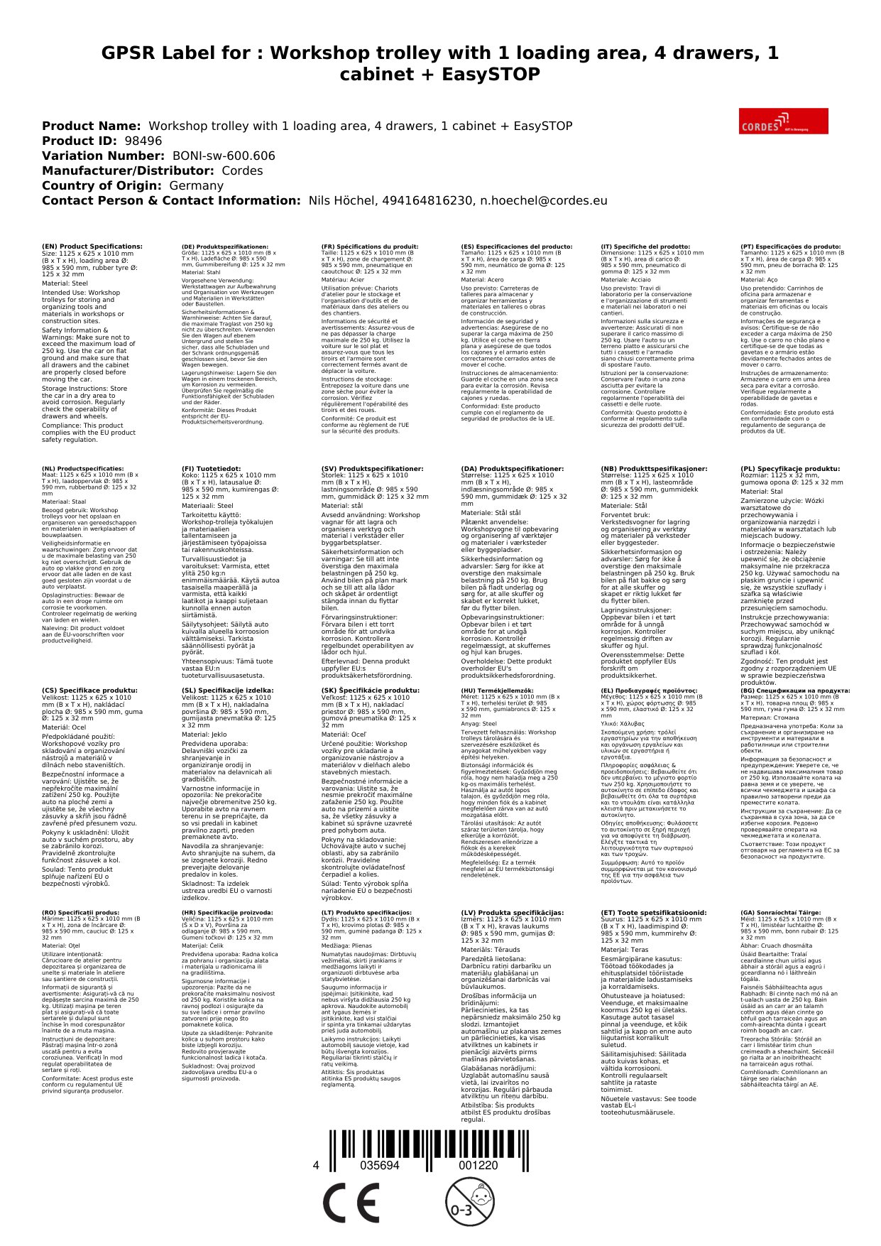 Ja, Ersatzteile für den Werkstattwagen sind bei Boni-Shop erhältlich.