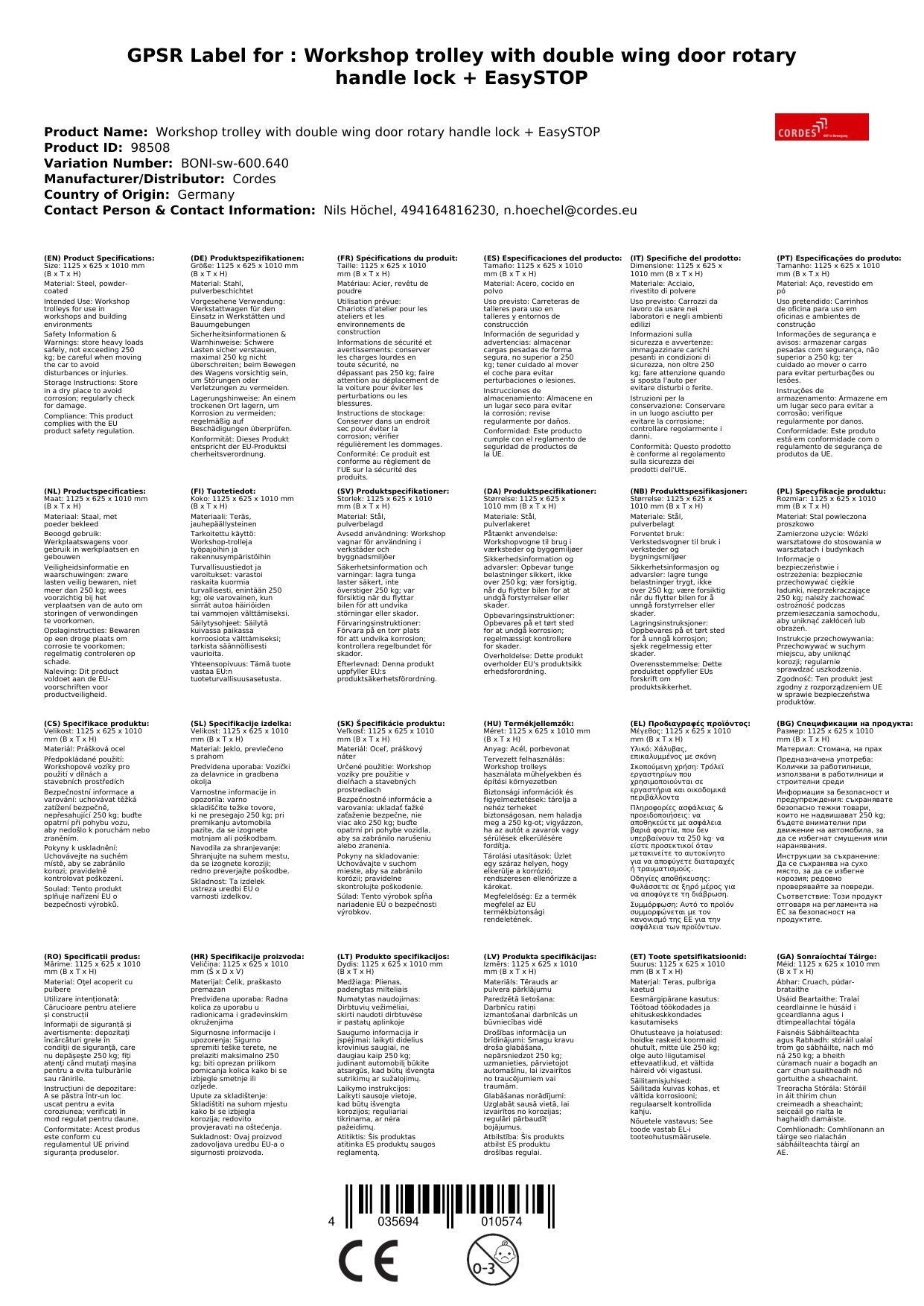 Der Kundenservice war sehr freundlich und hilfsbereit. Der Werkstattwagen ist genau das, was ich gesucht habe.