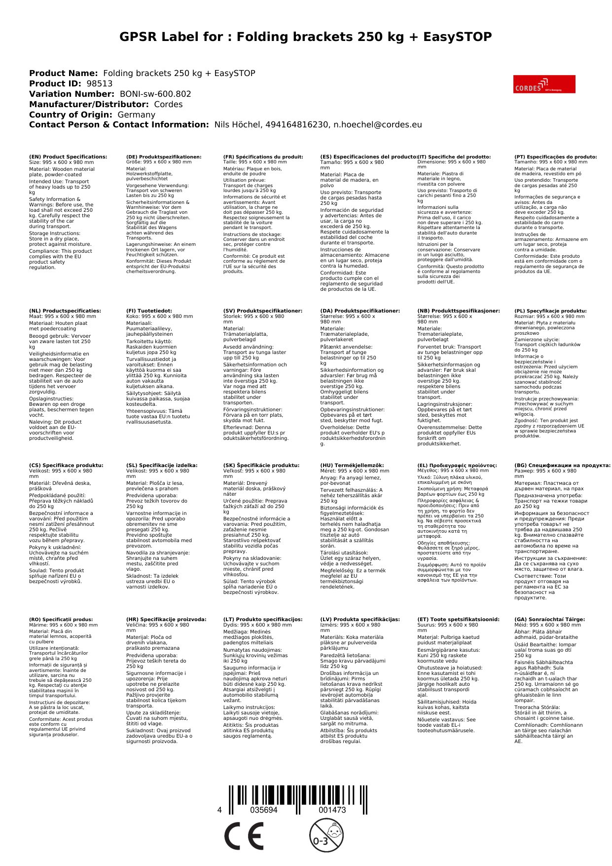 | Brand | Cordes |