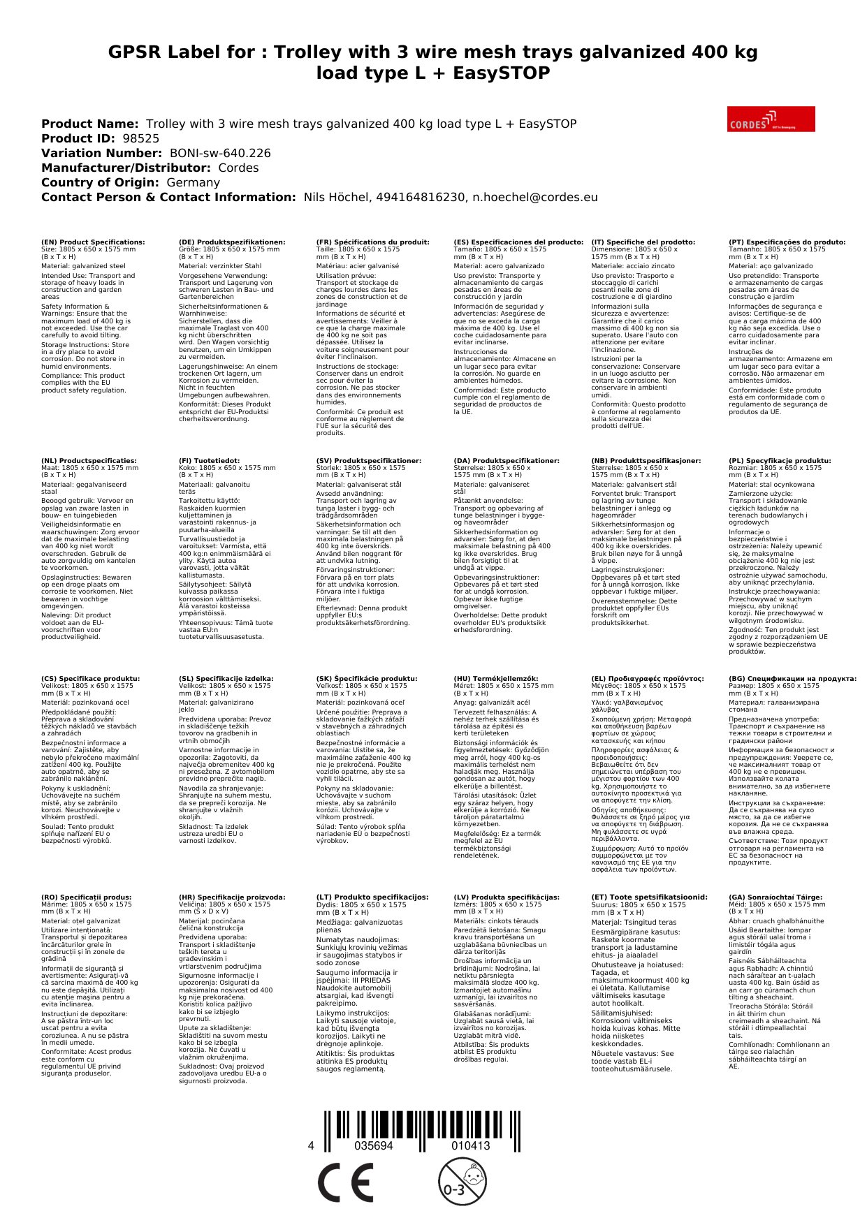 Suchst Du einen robusten und zuverlässigen Helfer für Werkstatt, Lager oder Transport? Unser Etagenwagen mit drei Drahtgitterböden bietet Dir eine Traglast von 400 kg und flexible Einsatzmöglichkeiten. Dank der verzinkten Oberfläche ist er bestens vor Korrosion geschützt und hält auch anspruchsvollen Bedingungen stand.