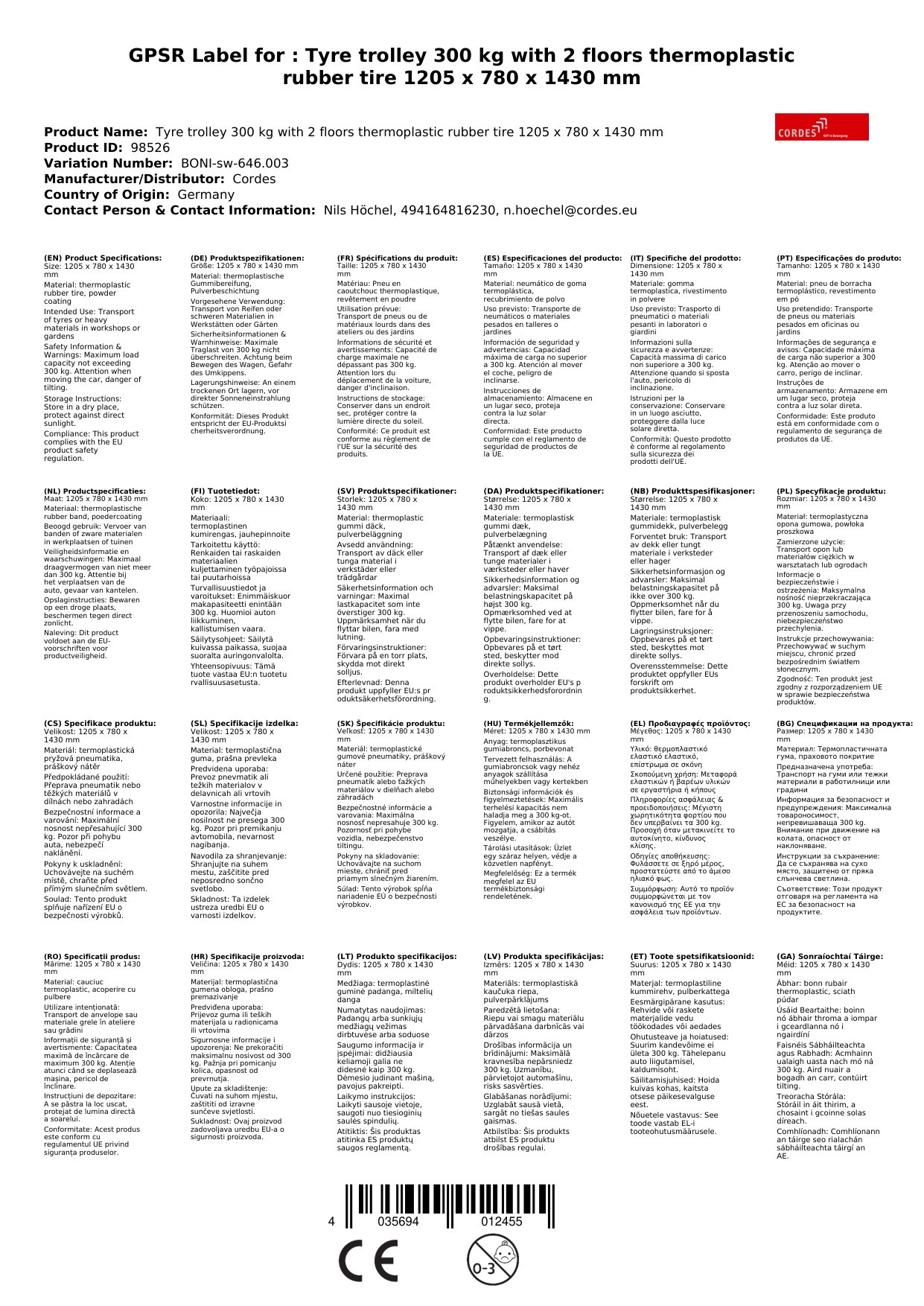 Reifenwagen 300 kg mit 2 Etagen thermoplastische Gummibereifung 1205 x 780 x 1430 mm