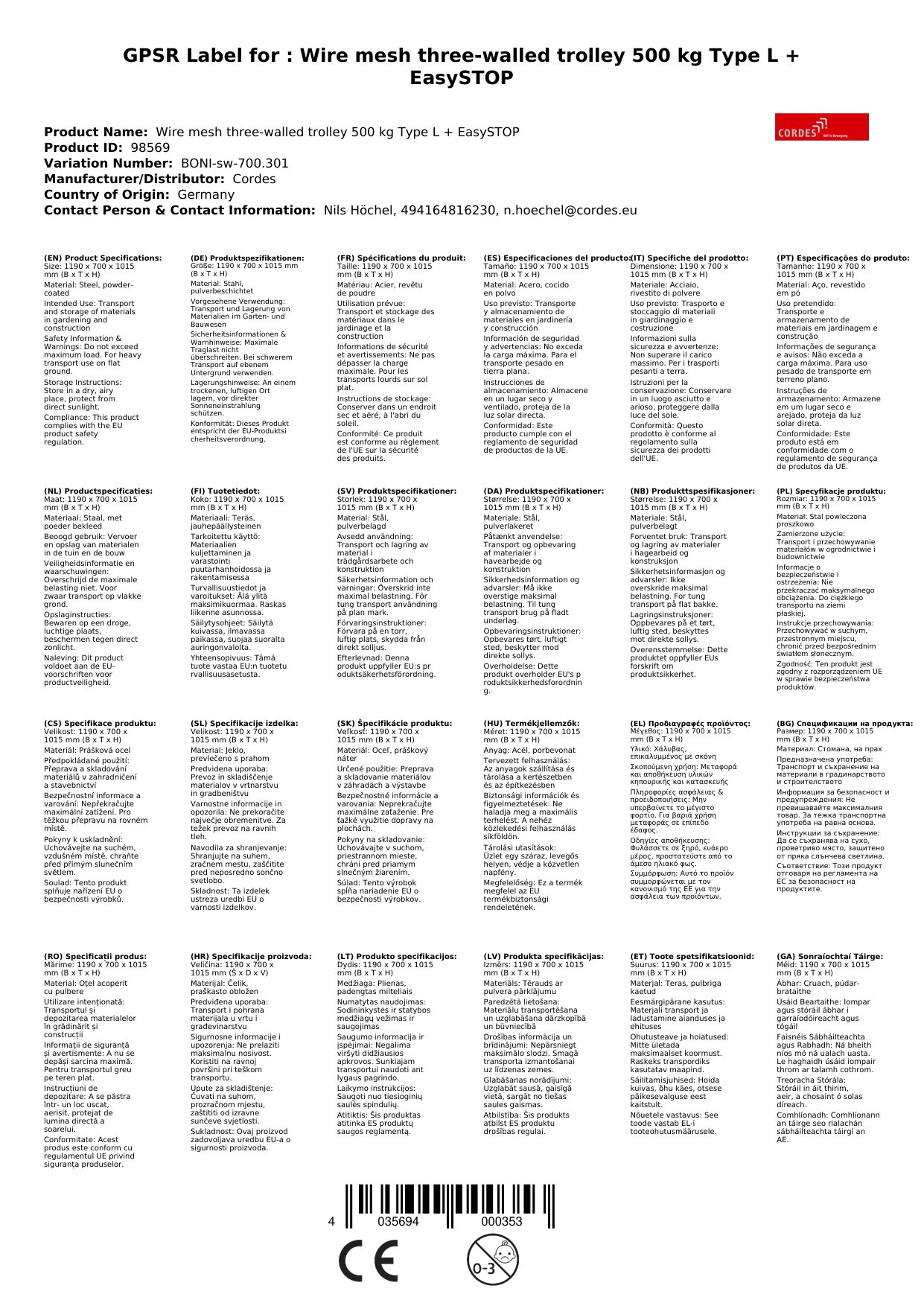 - Sichere Lasten: Durch die drei Wände aus Drahtgitter sind Ihre Transportgüter optimal geschützt.