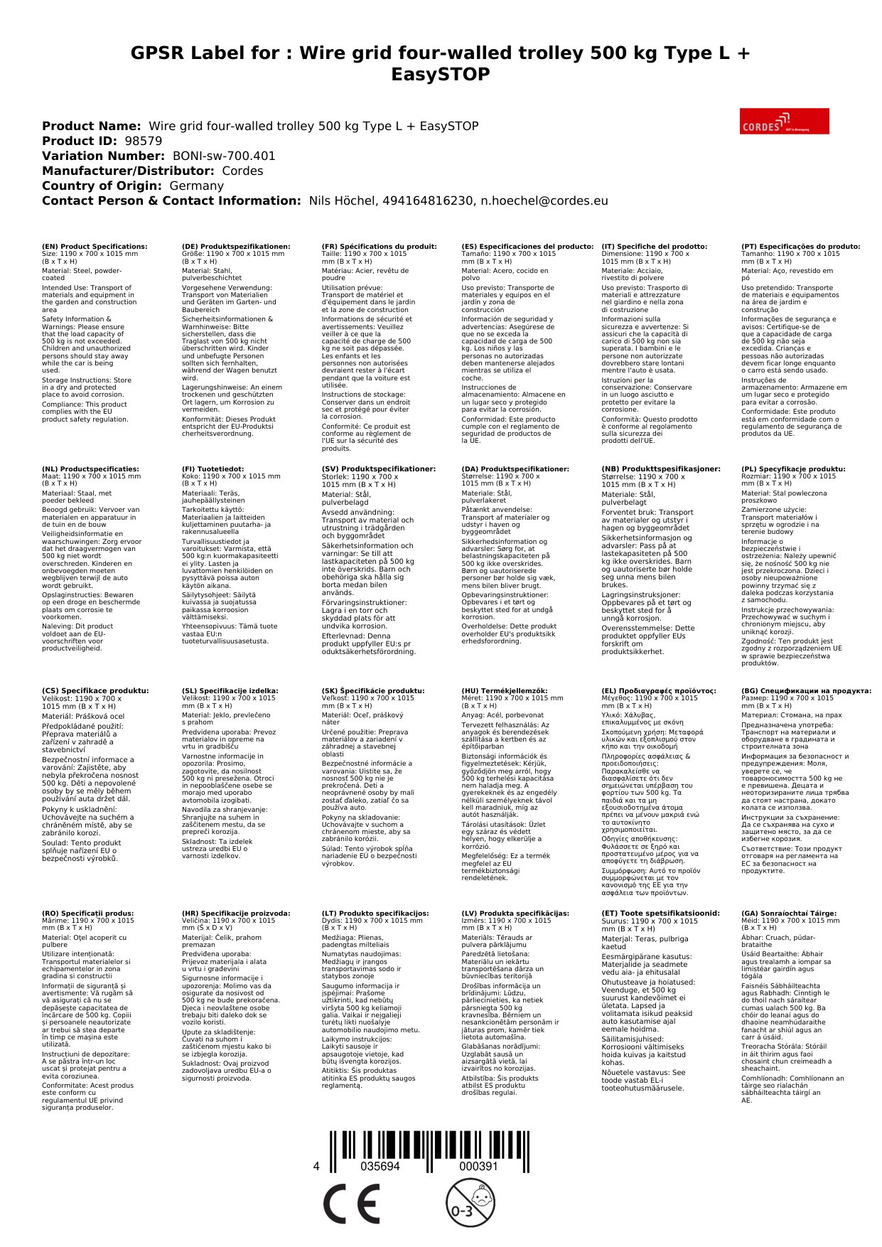 Drahtgitterwagen 500 kg, Typ L, EasySTOP, Transportwagen