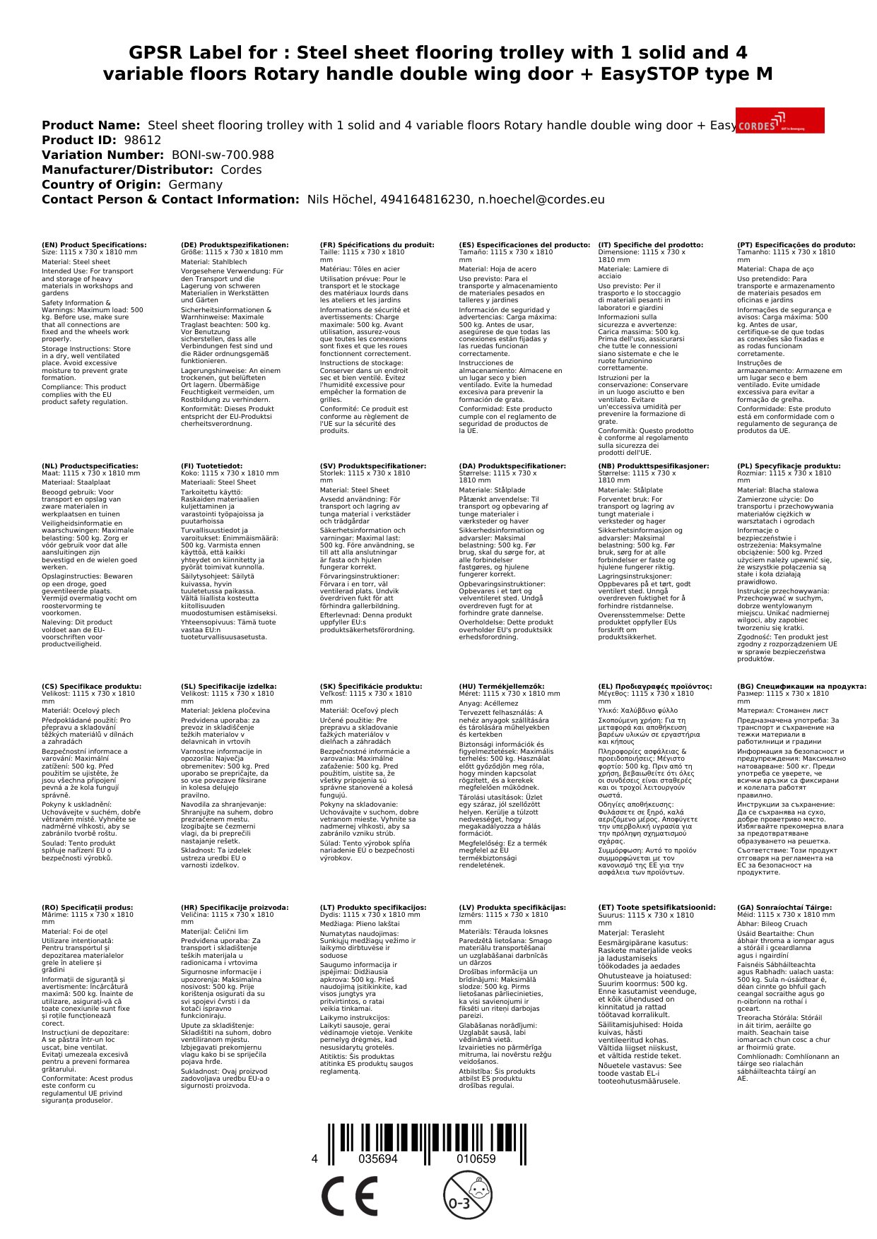 - Lange Lebensdauer: Die robuste Stahlblechkonstruktion und die hochwertige Pulverbeschichtung garantieren eine lange Lebensdauer des Wagens.