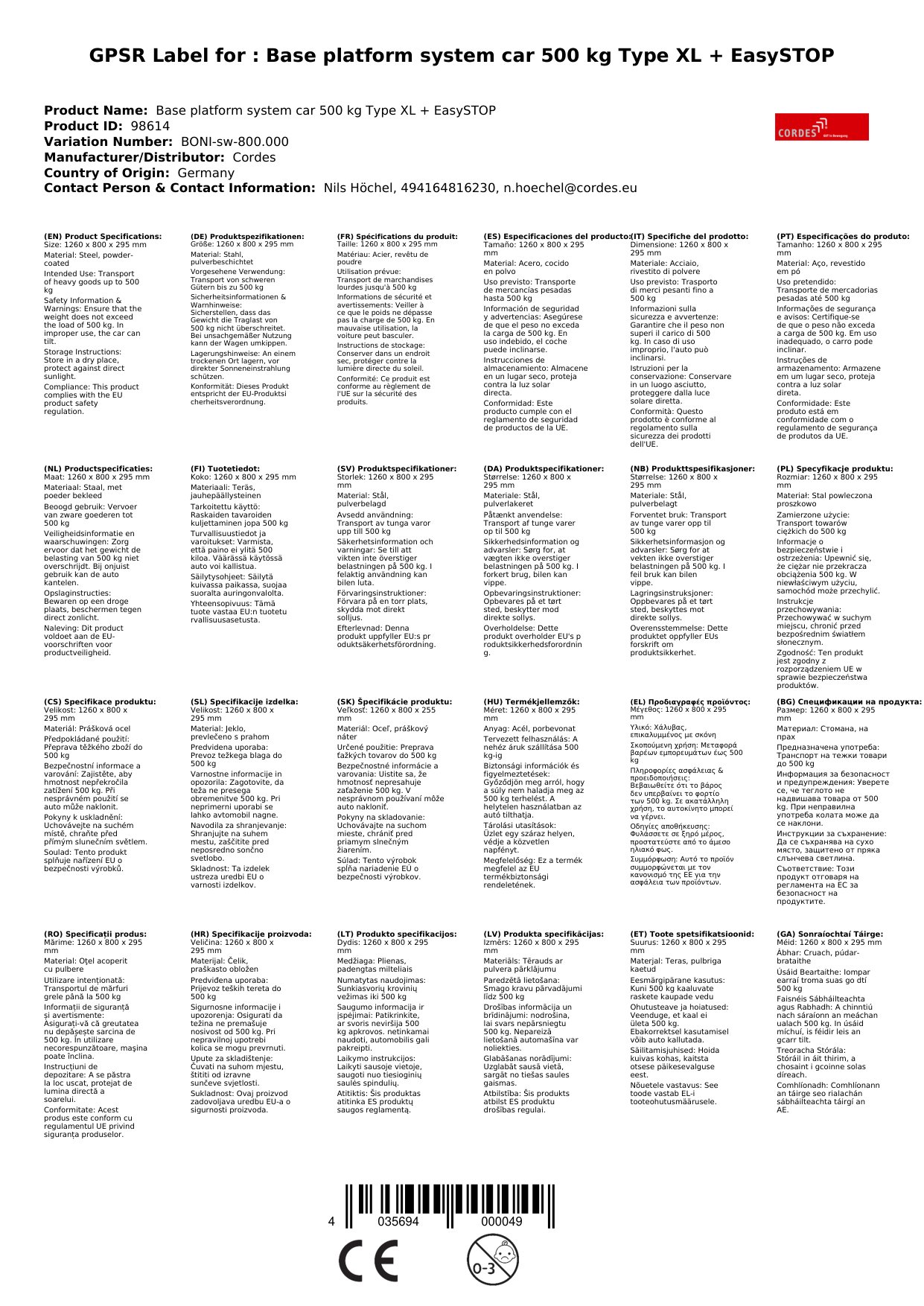 Plattformwagen 500 kg, Systemwagen XL, EasySTOP