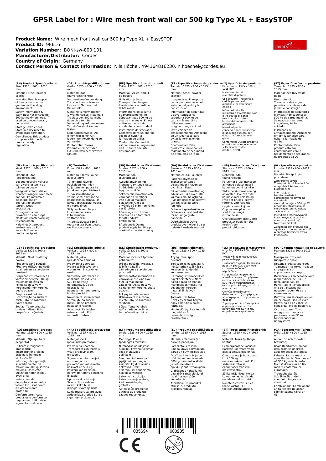 Unser Drahtgitter Stirnwandwagen bietet Ihnen eine hohe Traglast und Flexibilität für den täglichen Einsatz. Mit den Maßen von 1325 x 800 x 1015 mm und der EasySTOP-Funktion ist er ideal für den sicheren Transport schwerer Güter. Warum das für Sie wichtig ist: Sie erhalten einen zuverlässigen und langlebigen Wagen, der Ihnen die Arbeit erleichtert.