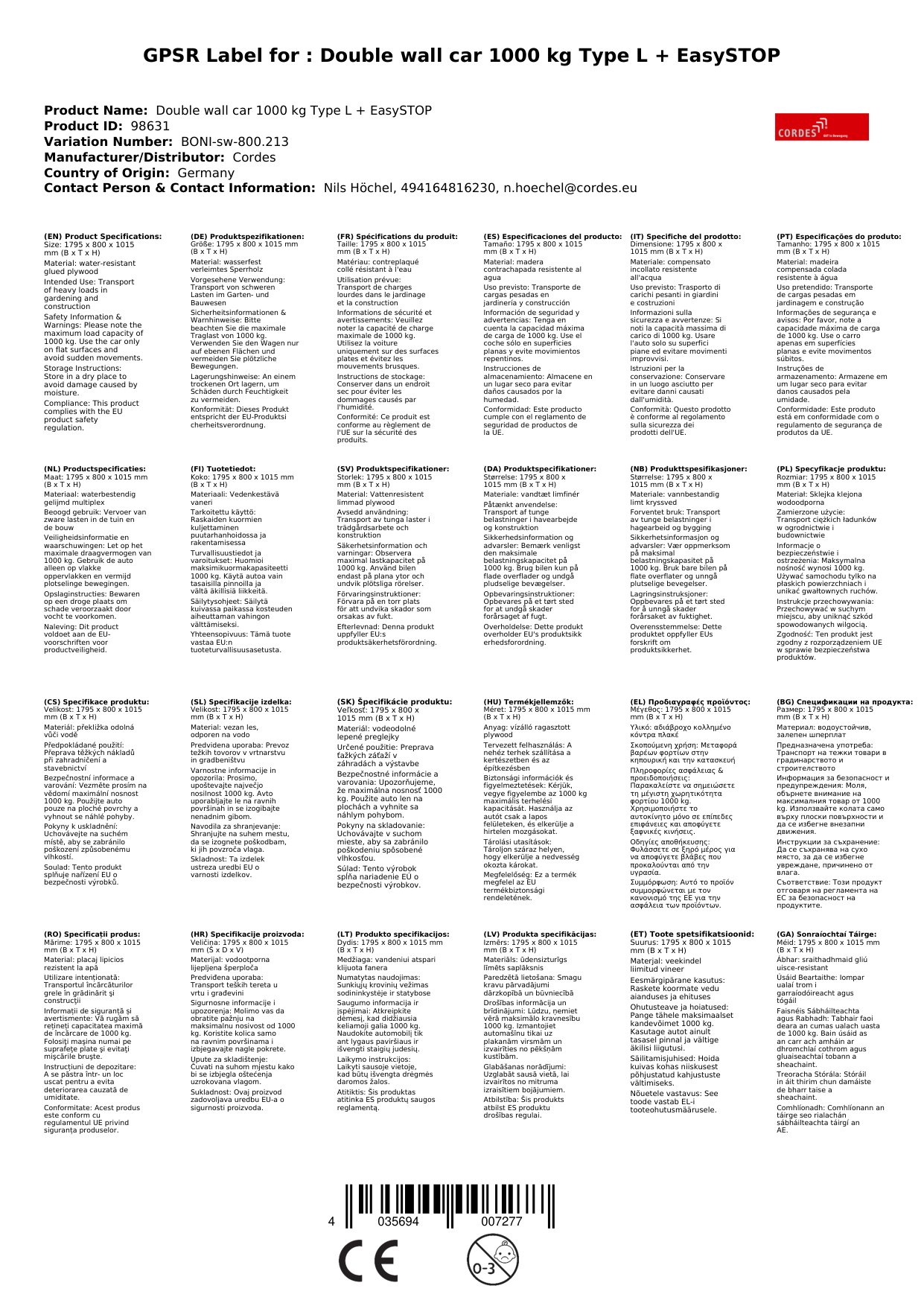 - Stabile Konstruktion: Die Ladefläche und Stirnwände aus wasserfest verleimtem Sperrholz sorgen für eine robuste und langlebige Bauweise.