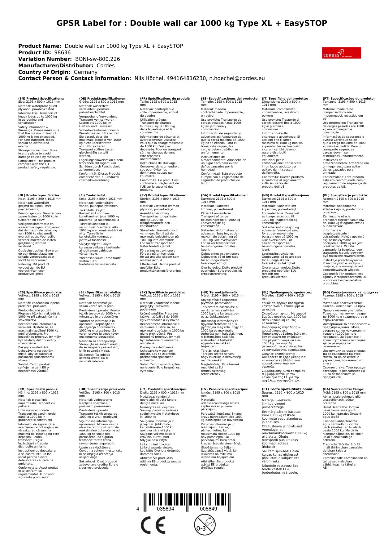 Stellen Sie eine Frage, um mehr über das Produkt zu erfahrenDoppel Stirnwandwagen – Ihr zuverlässiger Helfer für schwere Lasten