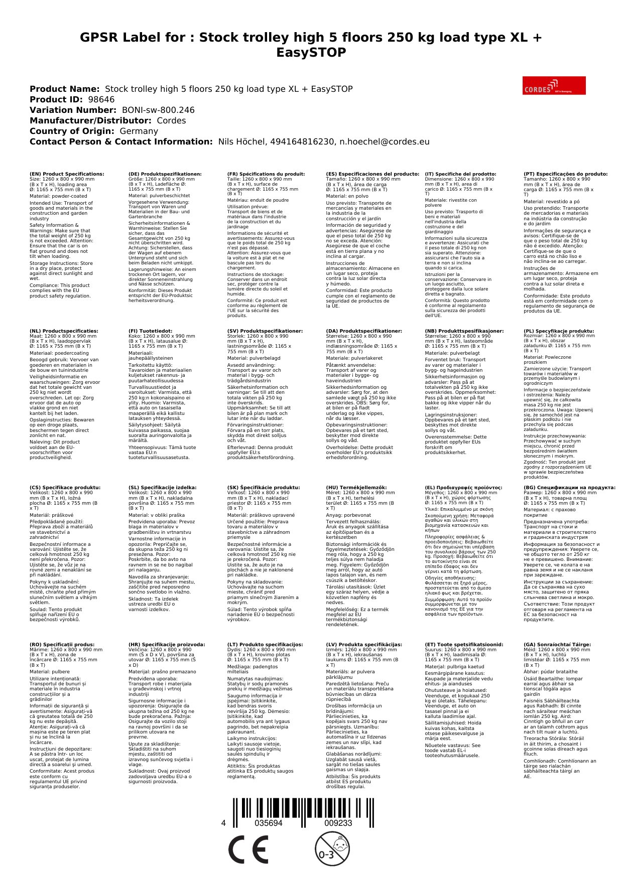 Stellen Sie eine Frage, um mehr über das Produkt zu erfahrenEtagenwagen hoch mit 5 Böden 250 kg Traglast Typ XL + EasySTOP
