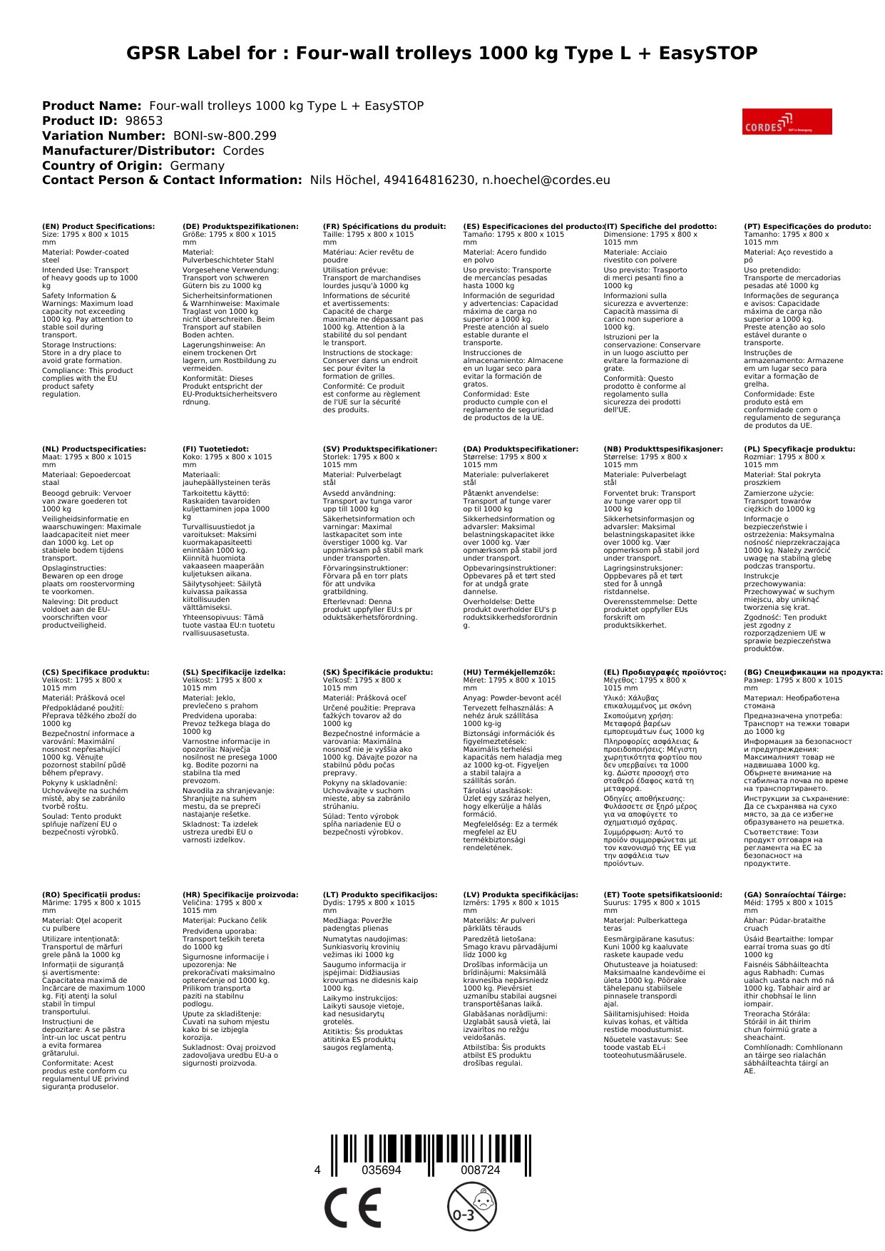 Stellen Sie eine Frage, um mehr über das Produkt zu erfahrenVierwandwagen 1000 kg Typ L + EasySTOP – Ihr flexibler Helfer für Transportaufgaben