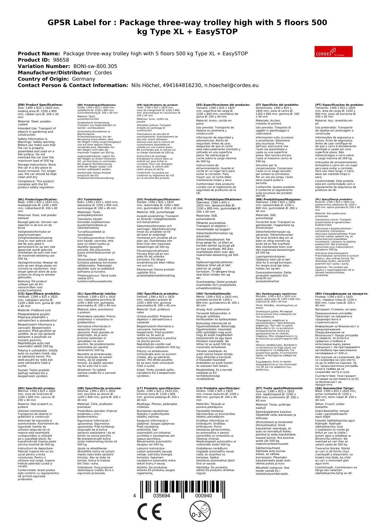 Unser Dreiwandwagen bietet eine hohe Traglast und Flexibilität für Ihre Transportbedürfnisse. Die fünf Böden ermöglichen eine optimale Nutzung des Stauraums. Dank der robusten Konstruktion und des EasySTOP-Systems ist der Wagen ideal für den täglichen Einsatz geeignet. Sie profitieren von einem langlebigen und sicheren Produkt, das Ihre Arbeitsabläufe effizienter gestaltet.