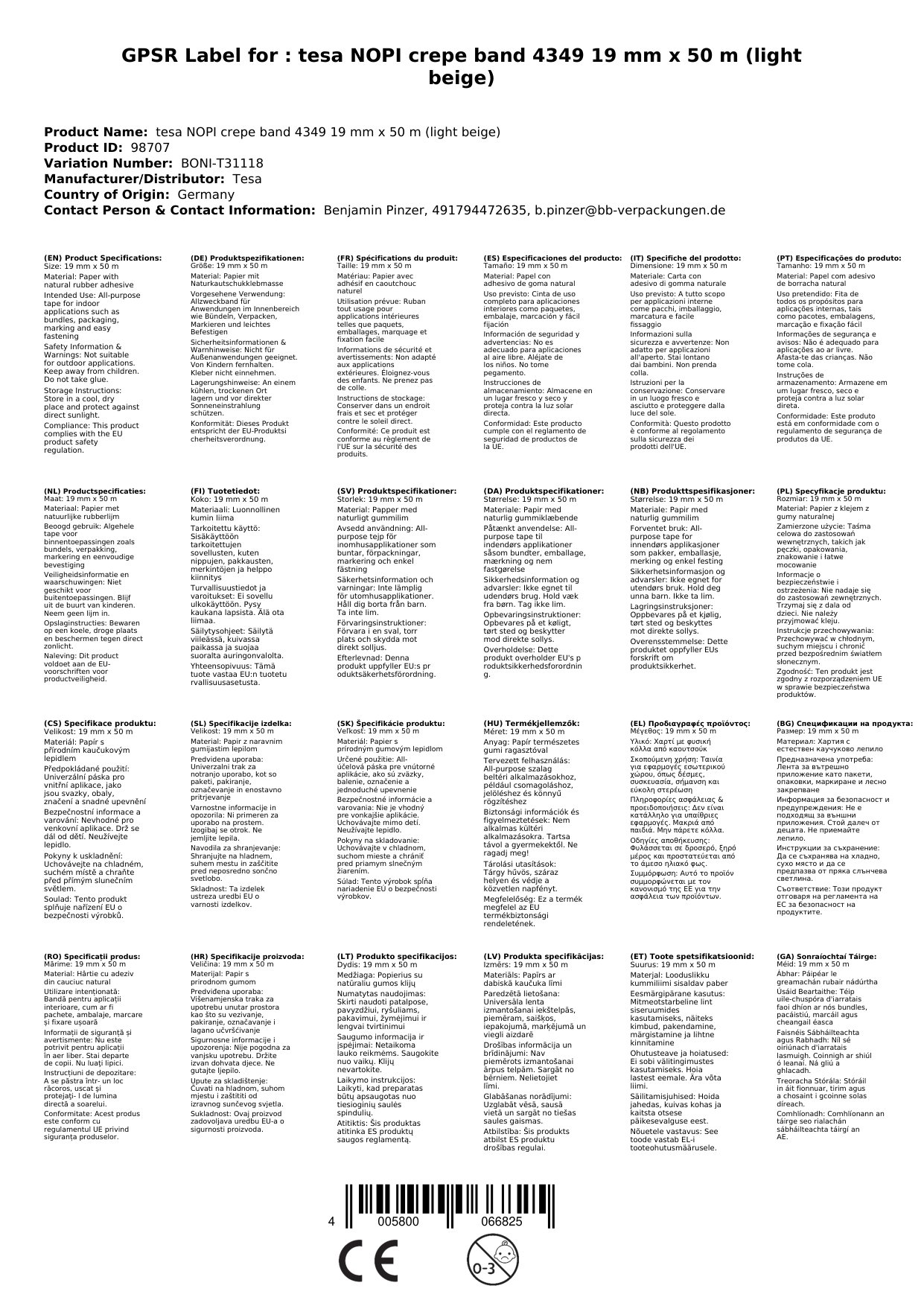 - Umweltfreundlicher: Das Papier ist eine nachhaltigere Alternative zu Kunststoffklebebändern und bietet dennoch eine hohe Funktionalität.