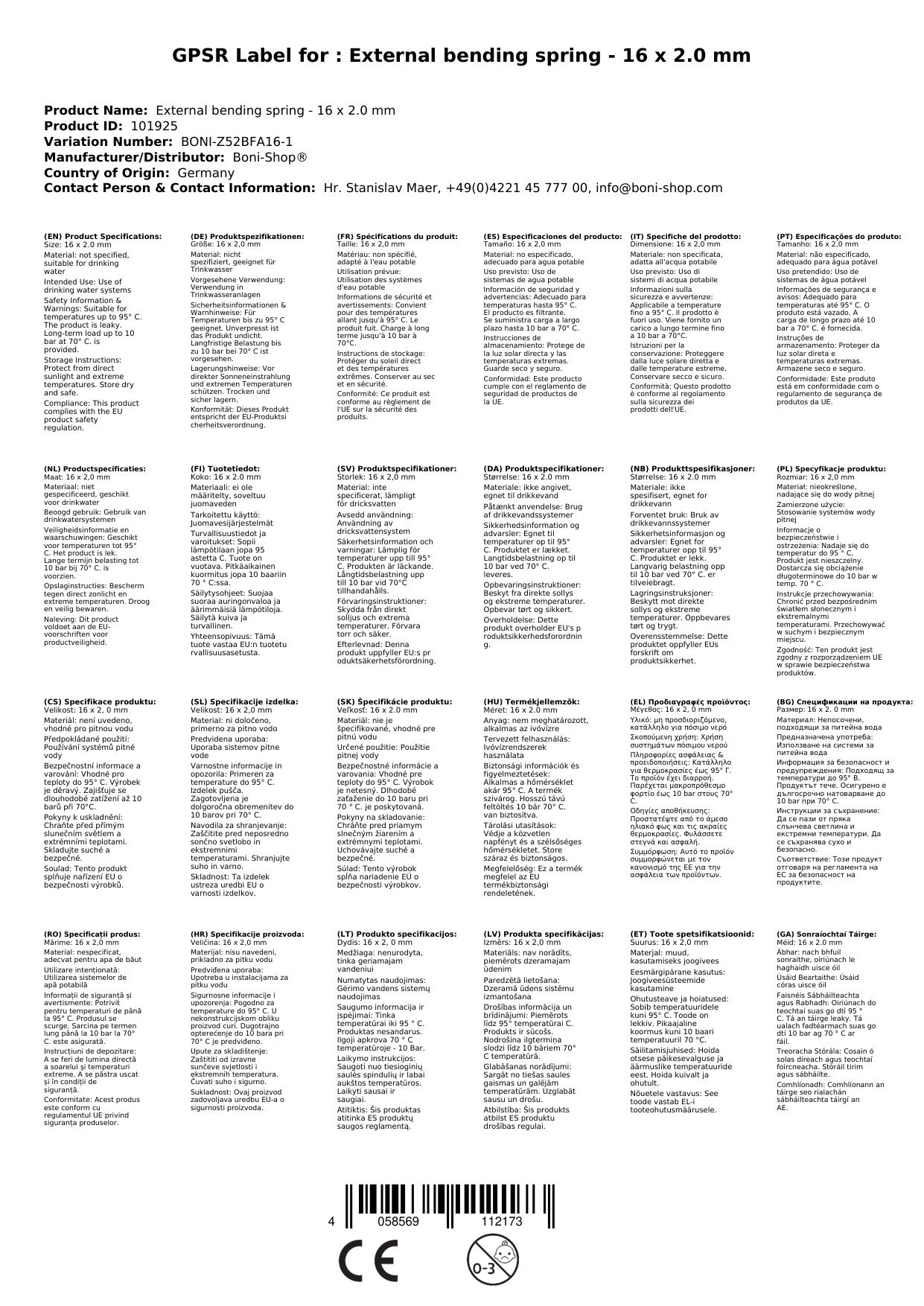 Diese Feder ist speziell für Rohre mit einem Durchmesser von 16 mm ausgelegt. Für andere Durchmesser bieten wir separate Biegefedern an.