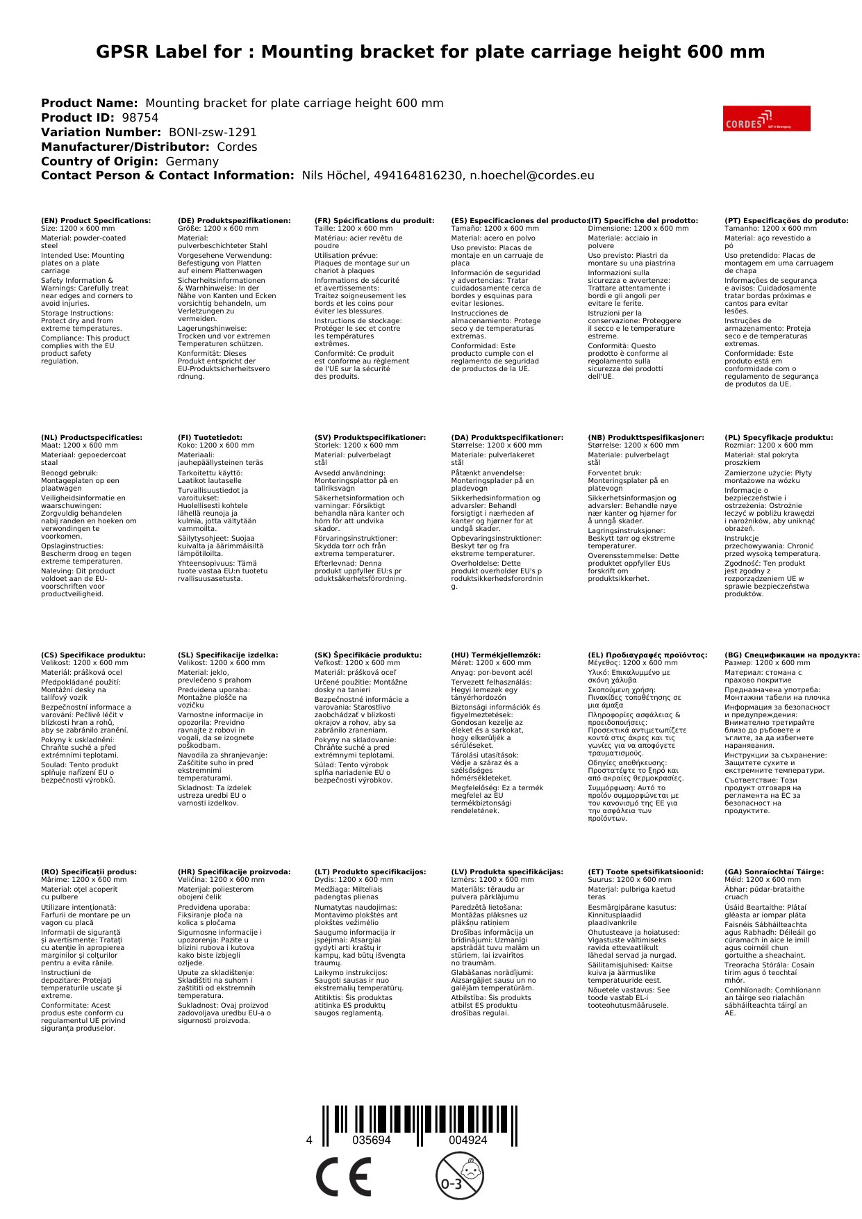 | Brand | Cordes |