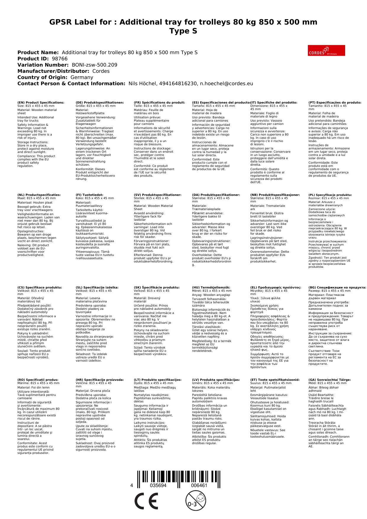 | 815 x 455 x 45 mm | 80 kg | Holzwerkstoffplatte (15 mm stark) | Buchendekor |