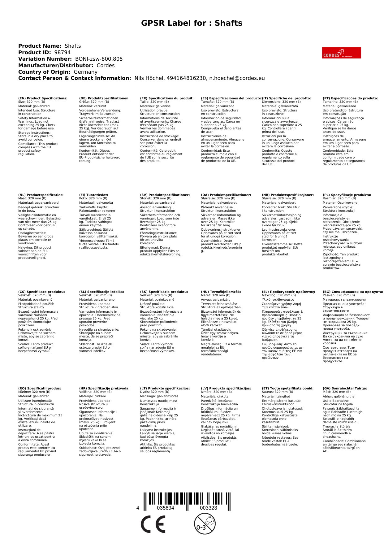 | Brand | Cordes |