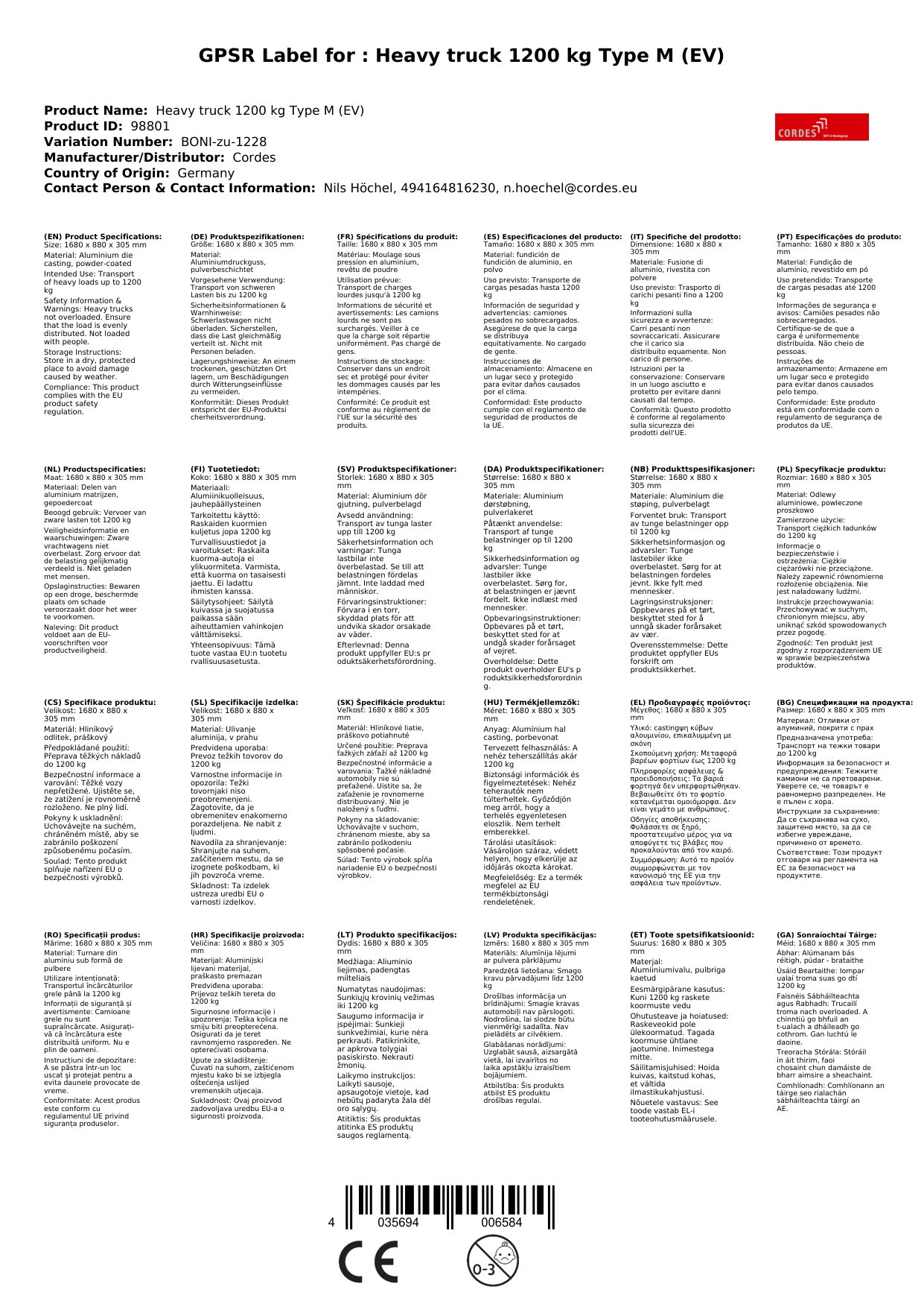 Schwerlastwagen 1200 kg Typ M (EV)
