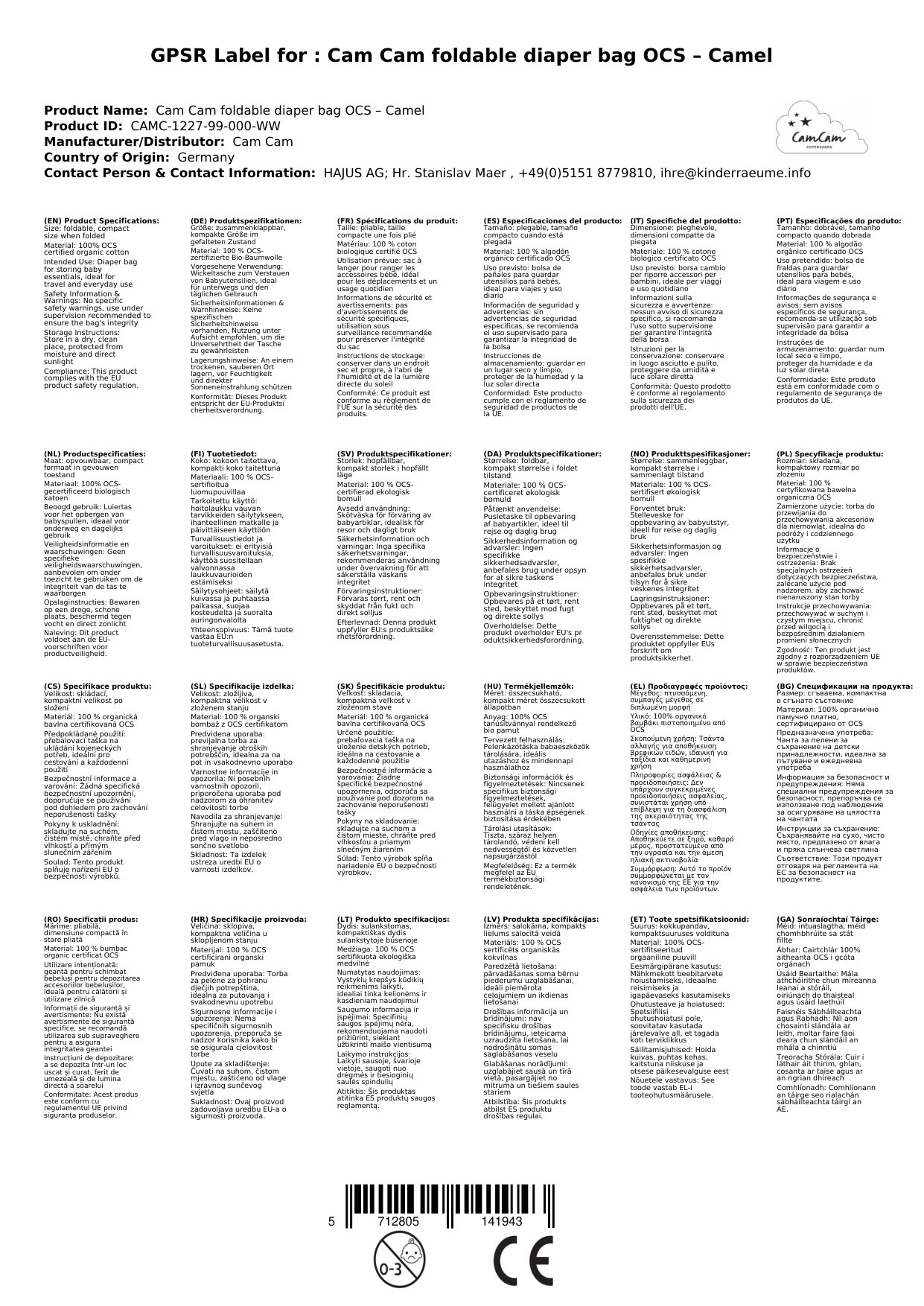 Stellen Sie eine Frage, um mehr über das Produkt zu erfahrenwickeltasche faltbar, Cam Cam, OCS zertifiziert, Bio Baumwolle, Camel, zusammenklappbar, mit Schultergurt