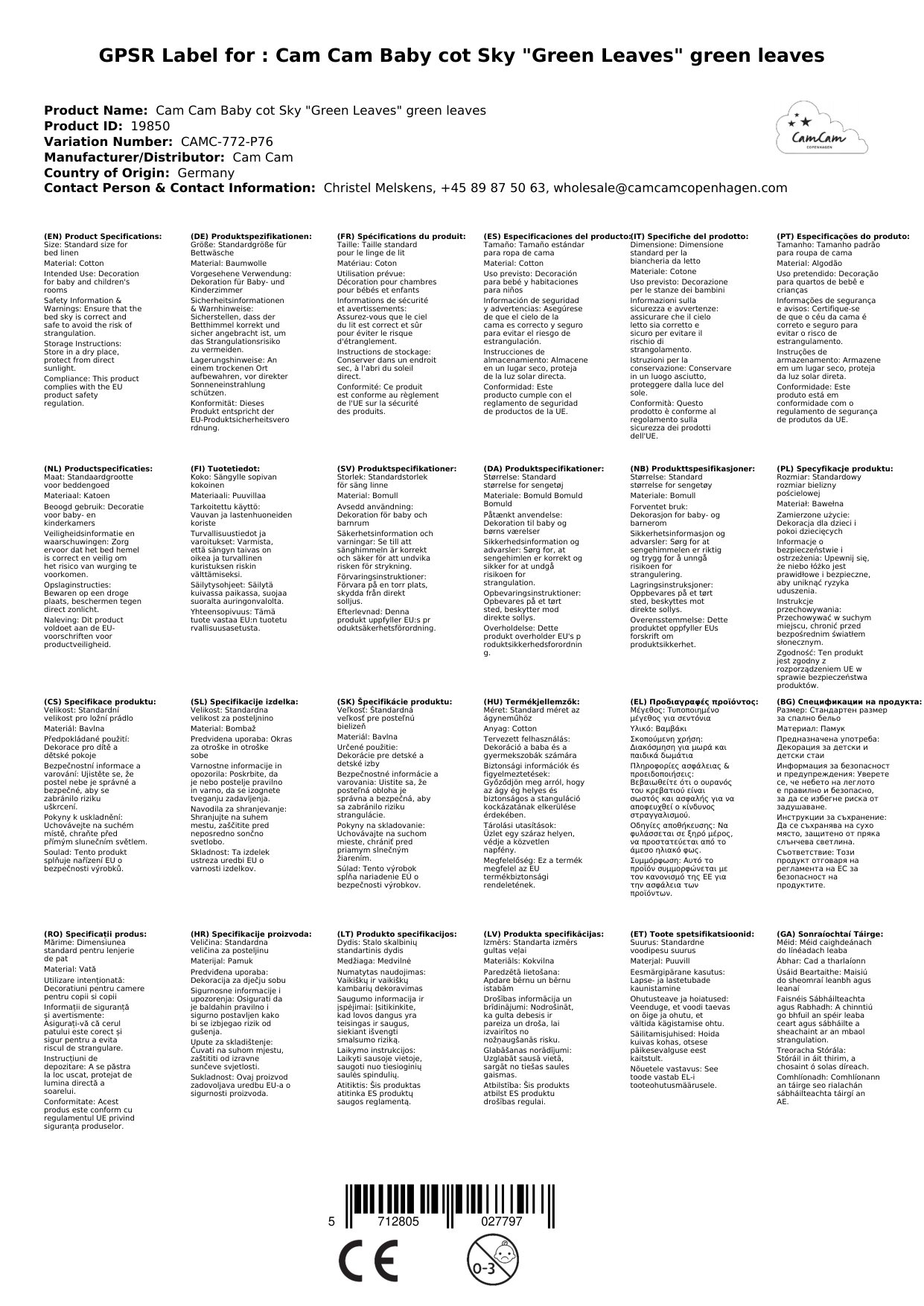 Cam Cam Babybett Himmel "Green Leaves" grüne Blätter