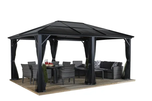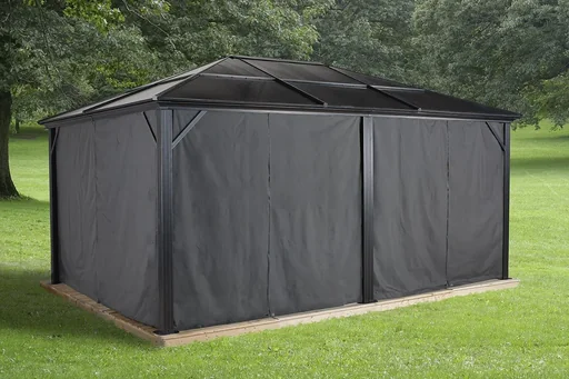 Pavillons sind Bauwerke, die eine feste Dachkonstruktion besitzen, deren Seitenwände aber offen oder zu öffnen sind. Hier finden Sie Gartenpavillons in den verschiedensten Ausführungen und Größen – von einer quadratischen Grundfläche, über das Sechseck bis hin zur Achteckform sind unterschiedliche Holzpavillons oder Modelle aus Glas erhältlich. Sie eigenen sich zum Unterstellen von Fahrzeugen und Gartengeräten oder laden als zentrales Element der Gartengestaltung zum Entspannen, Verweilen und Feiern ein.
