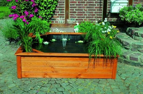 Holztrog eckig 70 cm als Wasserspiel Solar