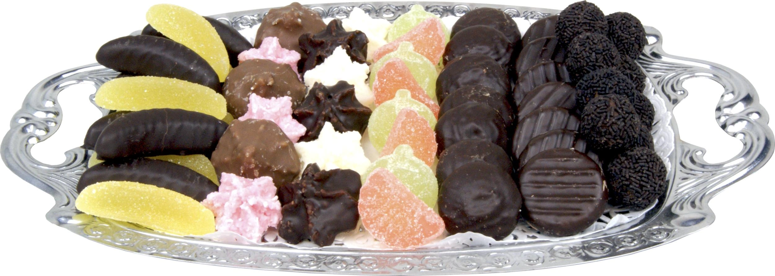 Ob zum Verschenken oder selber Naschen: In dieser Kategorie finden Sie kleine Köstlichkeiten und Süßwaren aller Art. Egal ob feines Gebäck, wie Kokosmaronen, belgische Pralinen, Old-English-Fudge, Spritzgebäck oder softes Haselnussnougat, hier ist für jeden etwas dabei.