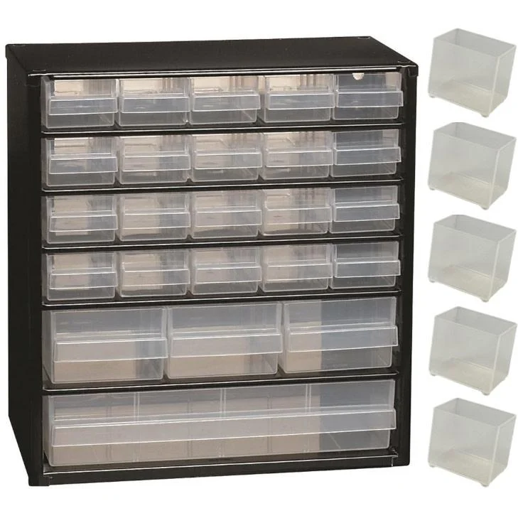 Zum Basteln und Heimwerken werden zahlreiche Kleinteile benötigt, die oft in irgendwelchen Schubladen oder Ablagen verschwinden und bei Bedarf umständlich und zeitintensiv gesucht werden müssen. Schaffen Sie Ordnung und Struktur mit unseren handlichen Sortimentskästen und Kleinteilmagazinen. Für große Werkstätten eignen sich weiterhin sogenannte Schüttelregale zum Sortieren von schnell zugänglichem Werkzeug. Finden Sie in unserem breiten Sortiment praktische Aufbewahrungskästen und Profi-Organizer mit mehreren Fächern und Deckel für unterschiedliche Einsatzzwecke.