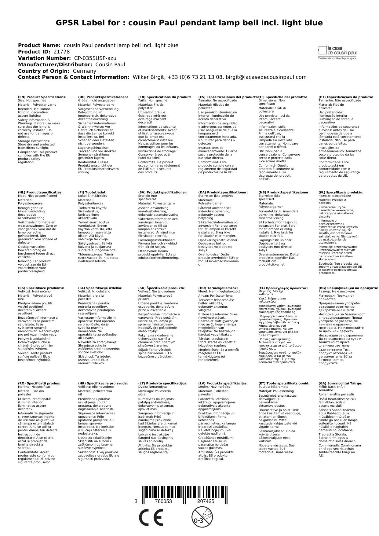 Die Glocke wird aus Polyestergarn hergestellt, für das der Hersteller bereits bekannt ist. Sie wirkt schon einzeln ganz toll, lässt sich aber auch fabelhaft mit passenden anderen Leuchten, wie beispielsweise Wand- oder Tischlampen aber auch den beliebten Lichterketten kombinieren. Die Glocke ist in verschiedenen Größen und Farben erhältlich. Darauf verweisen wir weiter unten.