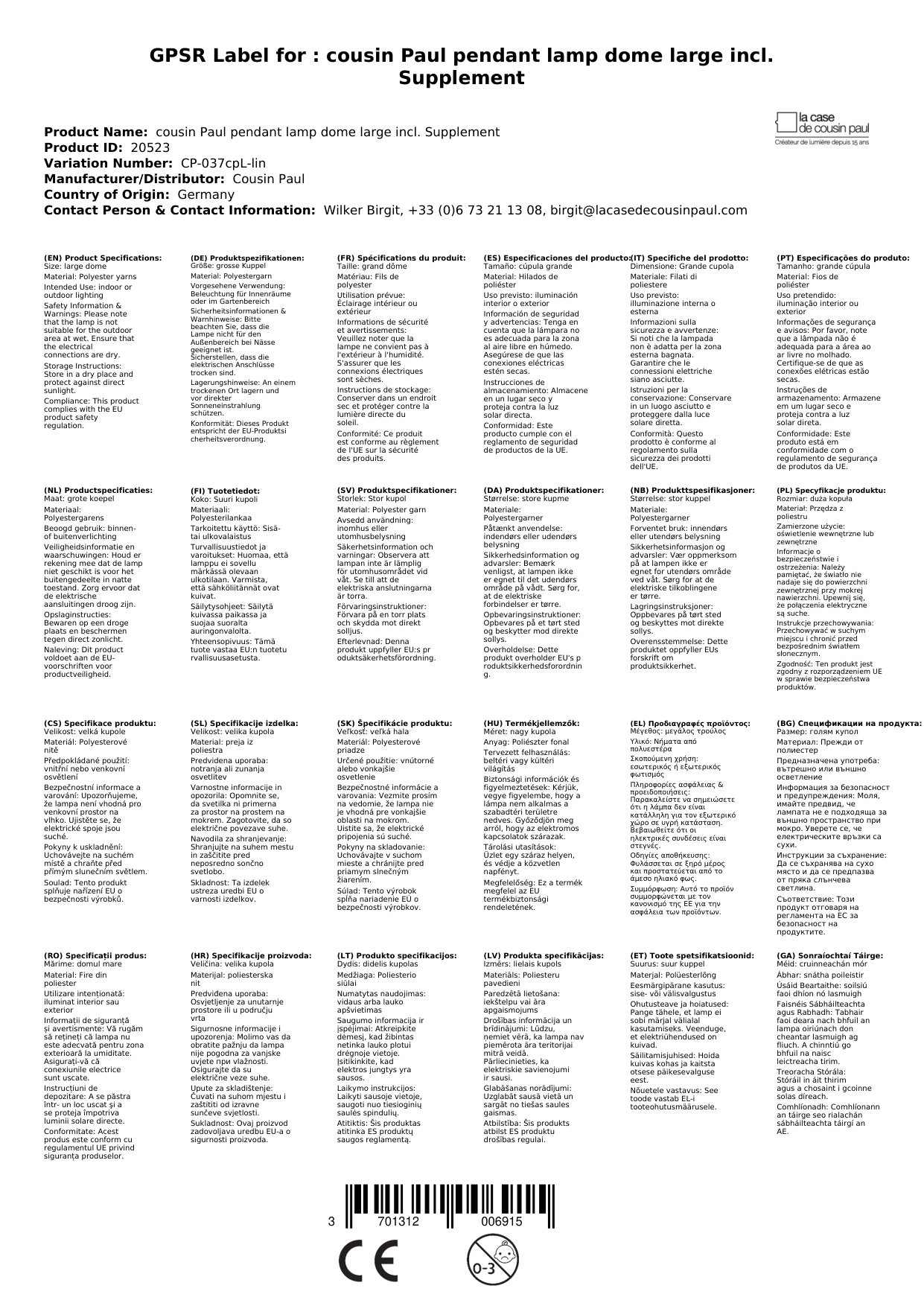 Cousin Paul Pendellampe Kuppel gross inkl. Fassung beige