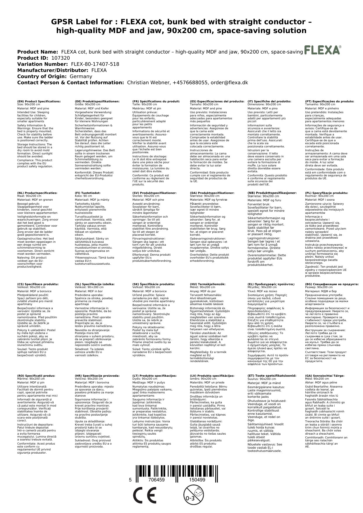 Das FLEXA Kinderbett ist eine perfekte platzsparende Lösung für kleinere Wohnungen. Dieses Etagenbett besteht aus hochwertigem MDF, während die Pfosten aus massivem Kiefernholz gefertigt sind. Mit einer Abmessung von 109x154x210 cm und einer Matratzengröße von 90x200 cm bietet es genügend Platz für ein Kind.