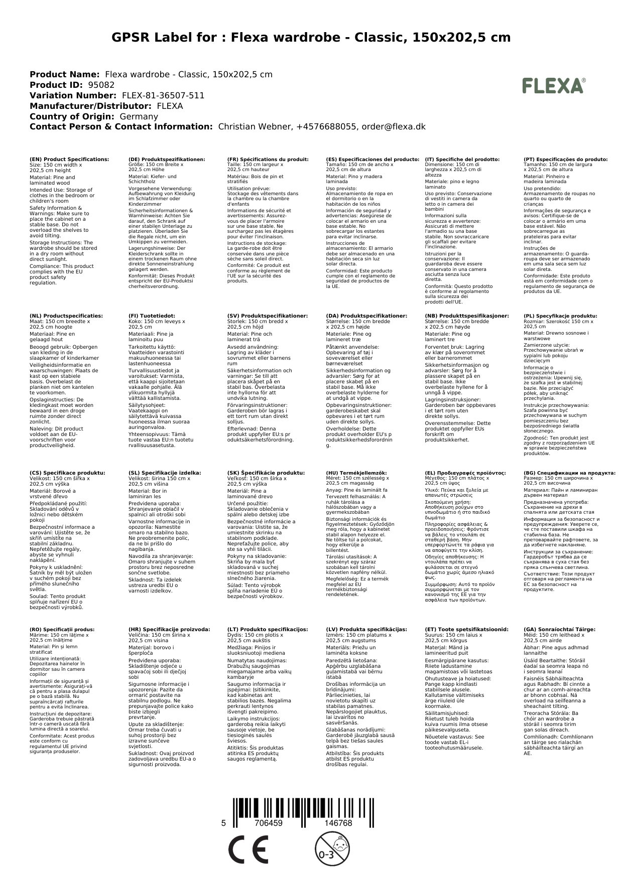 Stellen Sie eine Frage, um mehr über das Produkt zu erfahrenFlexa Kleiderschrank - Classic, 150x202,5 cm