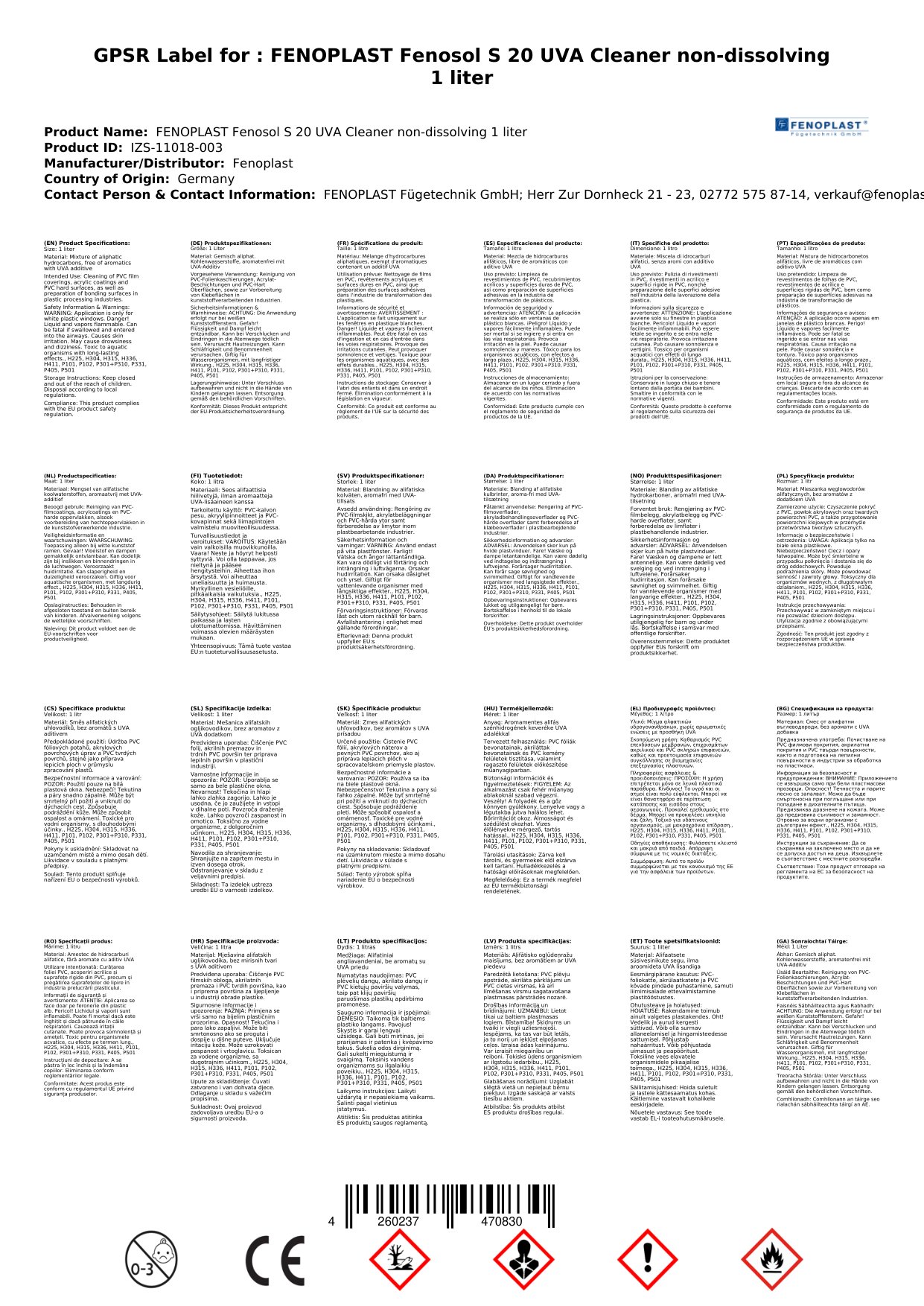 Fenosol S 20 UVA PVC-Spezialreiniger, entwickelt für die spannungsrissfreie Reinigung von PVC-Folienkaschierungen