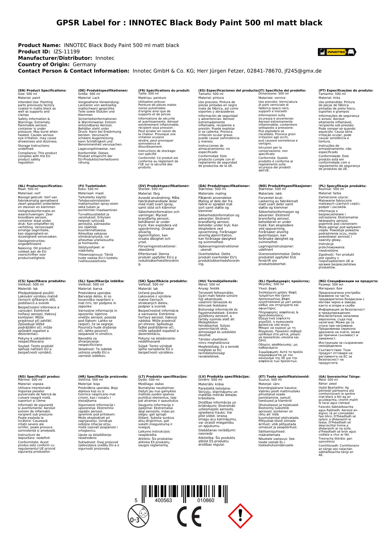 INNOTEC Black Body Paint Lack 500 ml schwarz matt