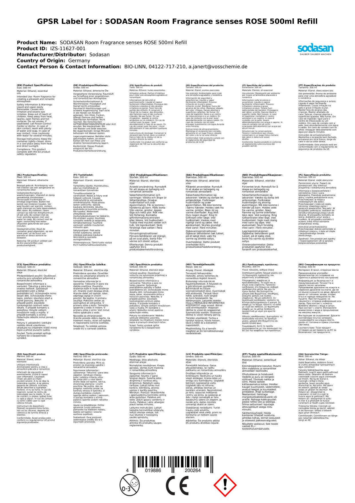 Kennzeichnungsauslösende Komponente: Ethanol 96%tig, ätherisches Öl