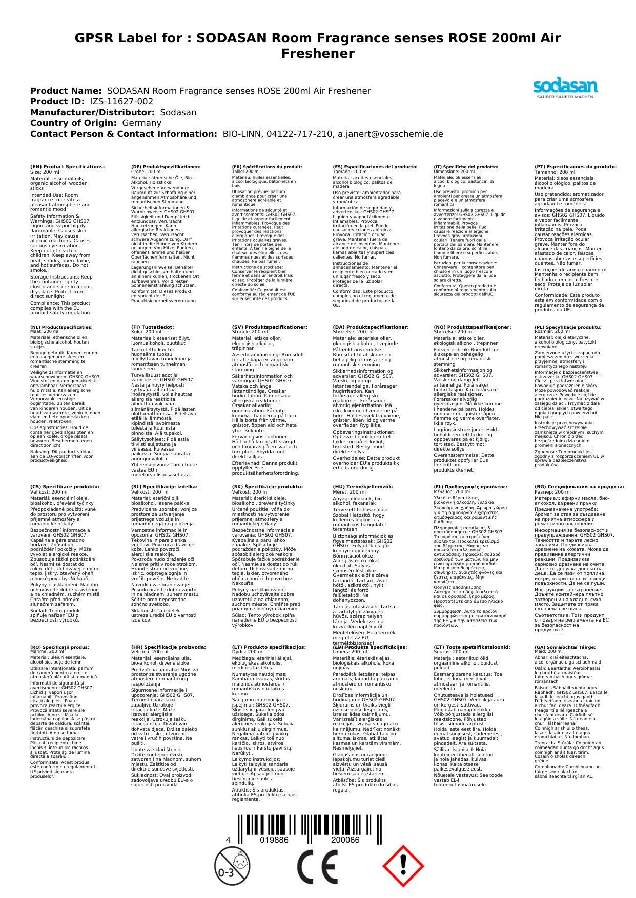 Kennzeichnungsauslösende Komponente: Ethanol 96%tig, ätherisches Öl