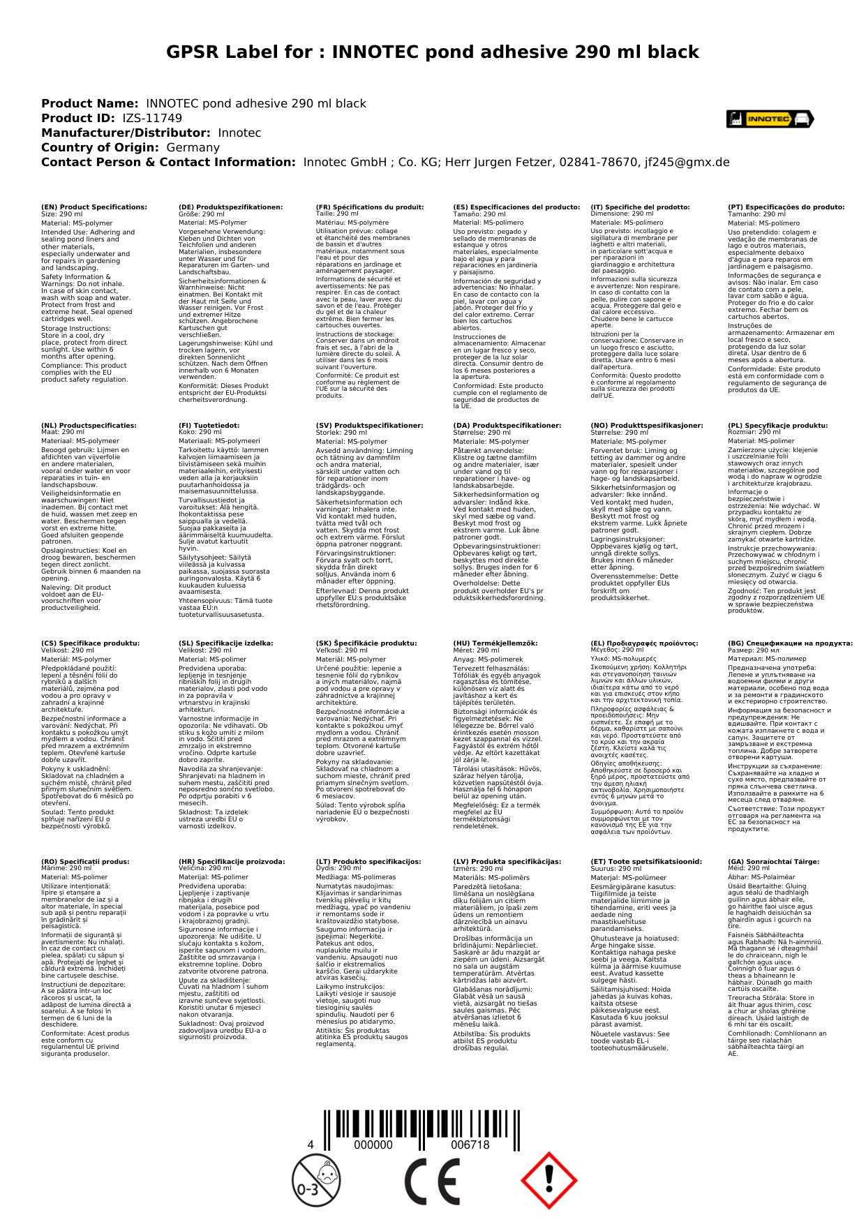 Innotec Teichfolienkleber 290 ml Kartusche schwarz