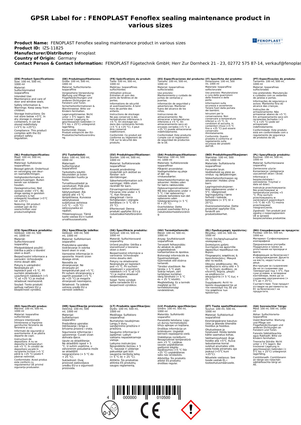 FENOPLAST Fenoflex Dichtungspflegemittel in verschiedenen Größengebinden