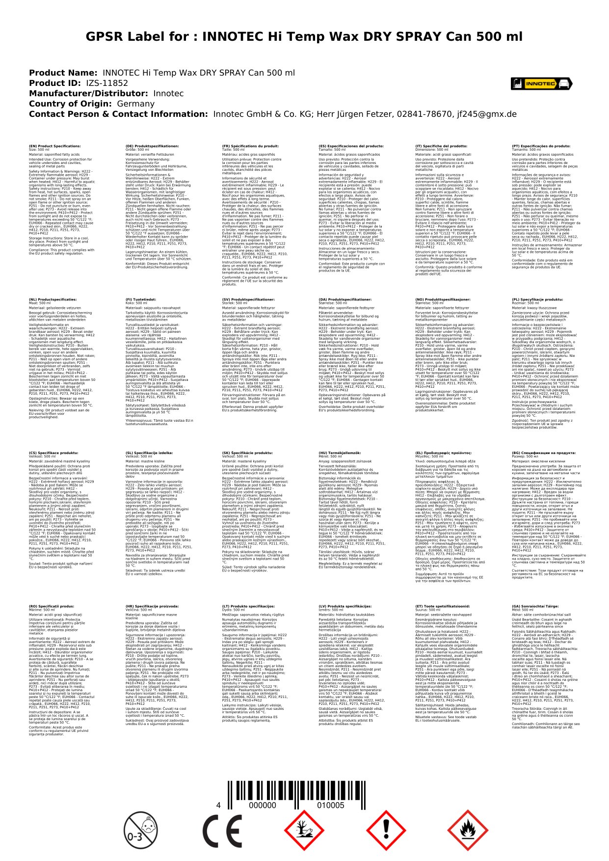 Stellen Sie eine Frage, um mehr über das Produkt zu erfahrenInnotec Hi Temp Wax Spray 500 ml