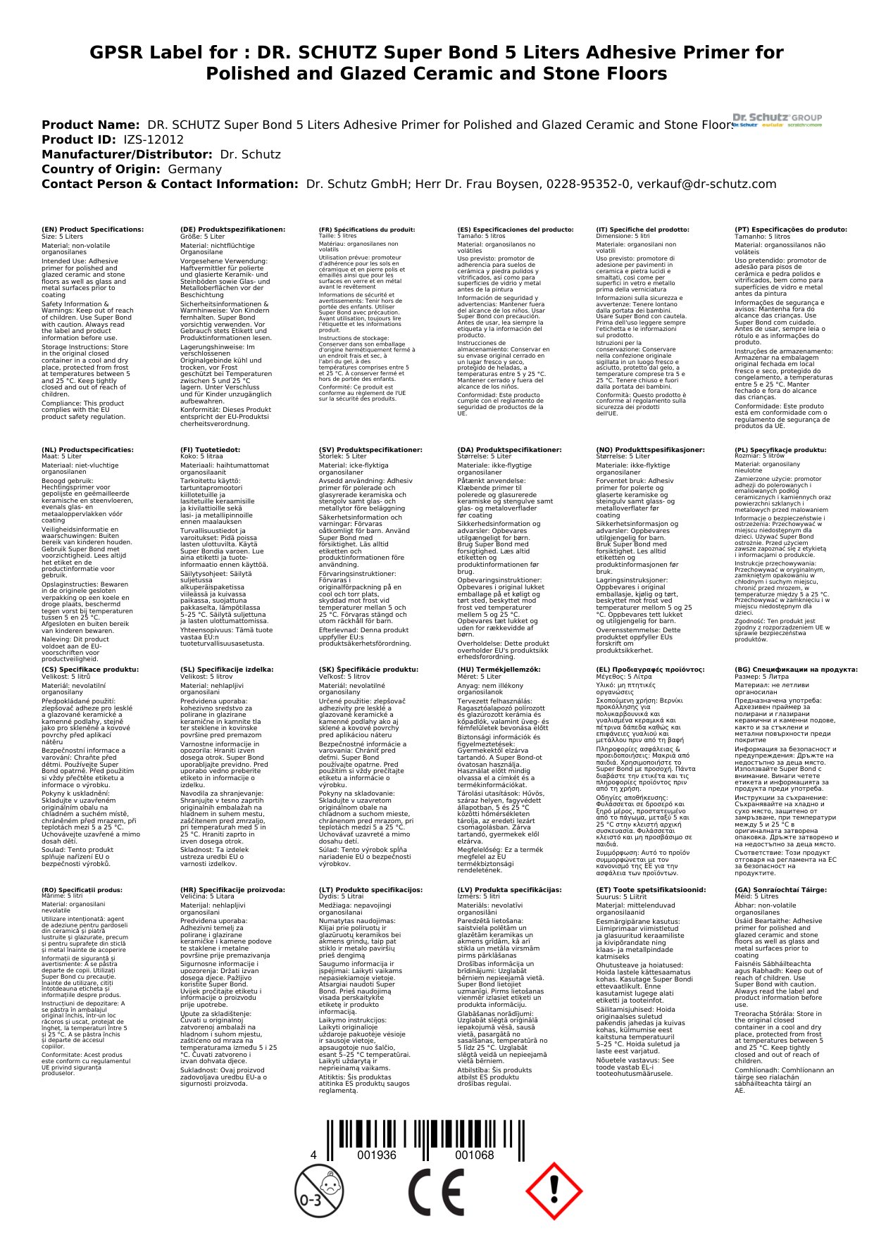 DR. SCHUTZ Super Bond 5 Liter Haftvermittler Haftprimer für polierte und glasierte Keramik- und Steinböden
