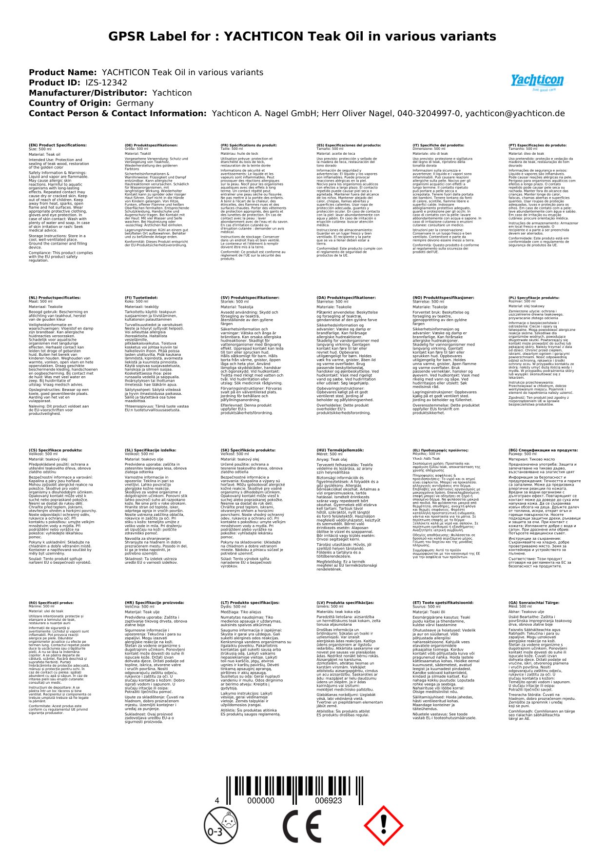 Stellen Sie eine Frage, um mehr über das Produkt zu erfahrenYachticon Teak Öl Golden Classic