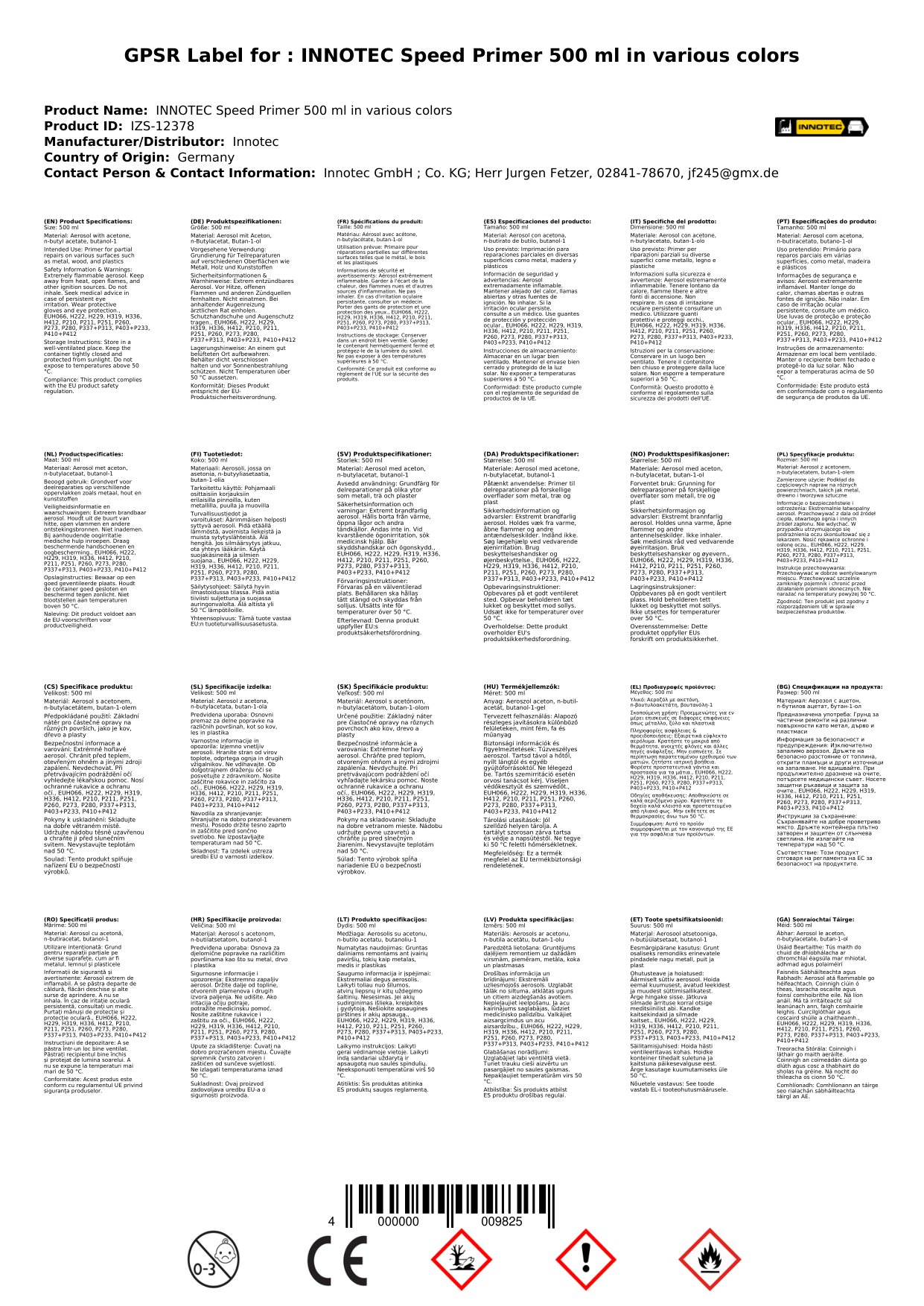 Stellen Sie eine Frage, um mehr über das Produkt zu erfahrenInnotec Speed Primer Grundlack 500 ml