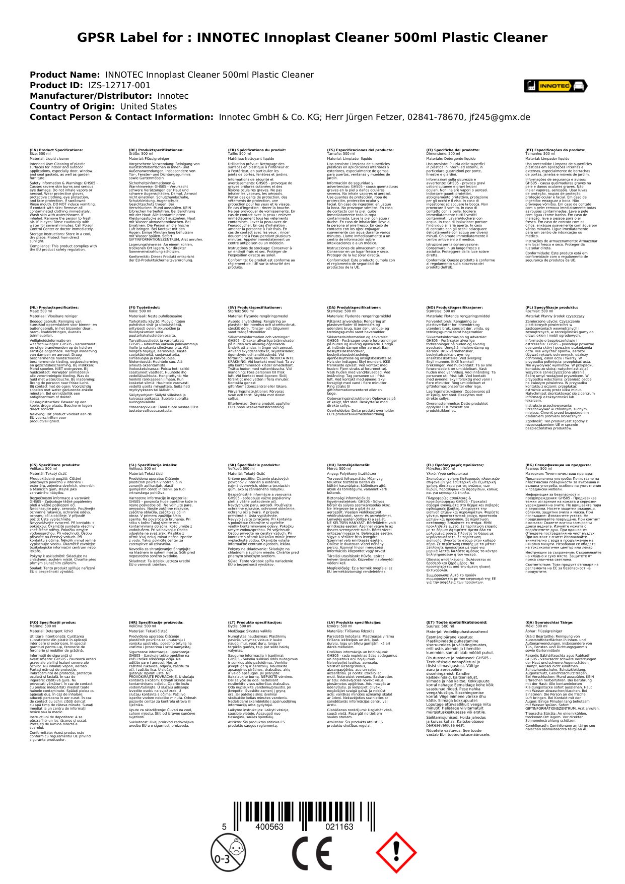 Stellen Sie eine Frage, um mehr über das Produkt zu erfahrenInnotec Innoplast Cleaner Kunststoffreiniger 500 ml